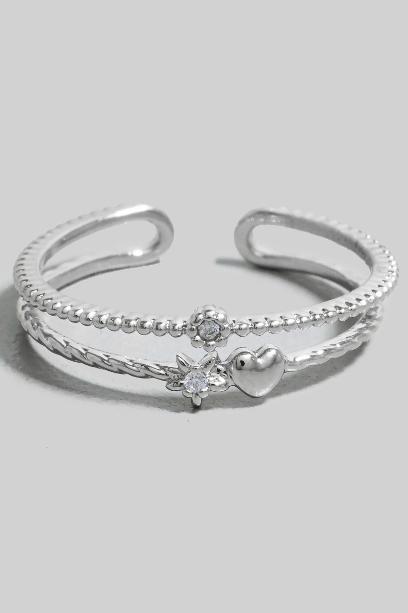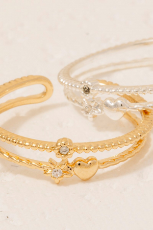 - This ring displays a fashionable gold dipped cubic zirconia heart and star layered open band style. Savor the craftsmanship that goes beyond the ordinary, as this ring effortlessly captivates attention.