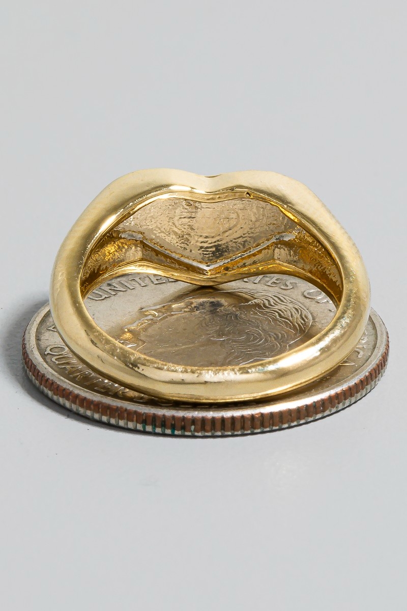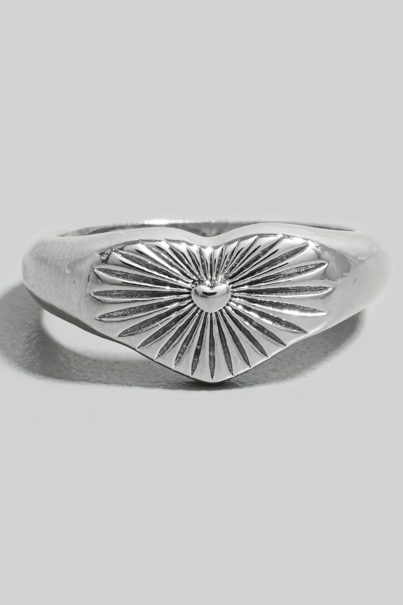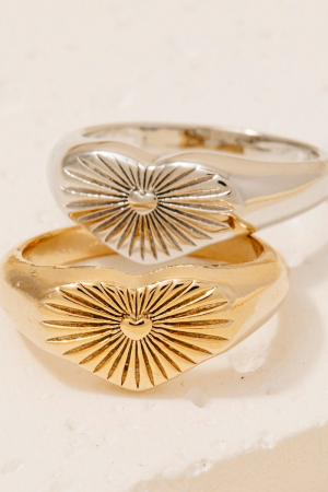 • This ring displays a fashionable gold dipped engraved heart signet band style. Elevate your ensemble with this chic, timeless ring.