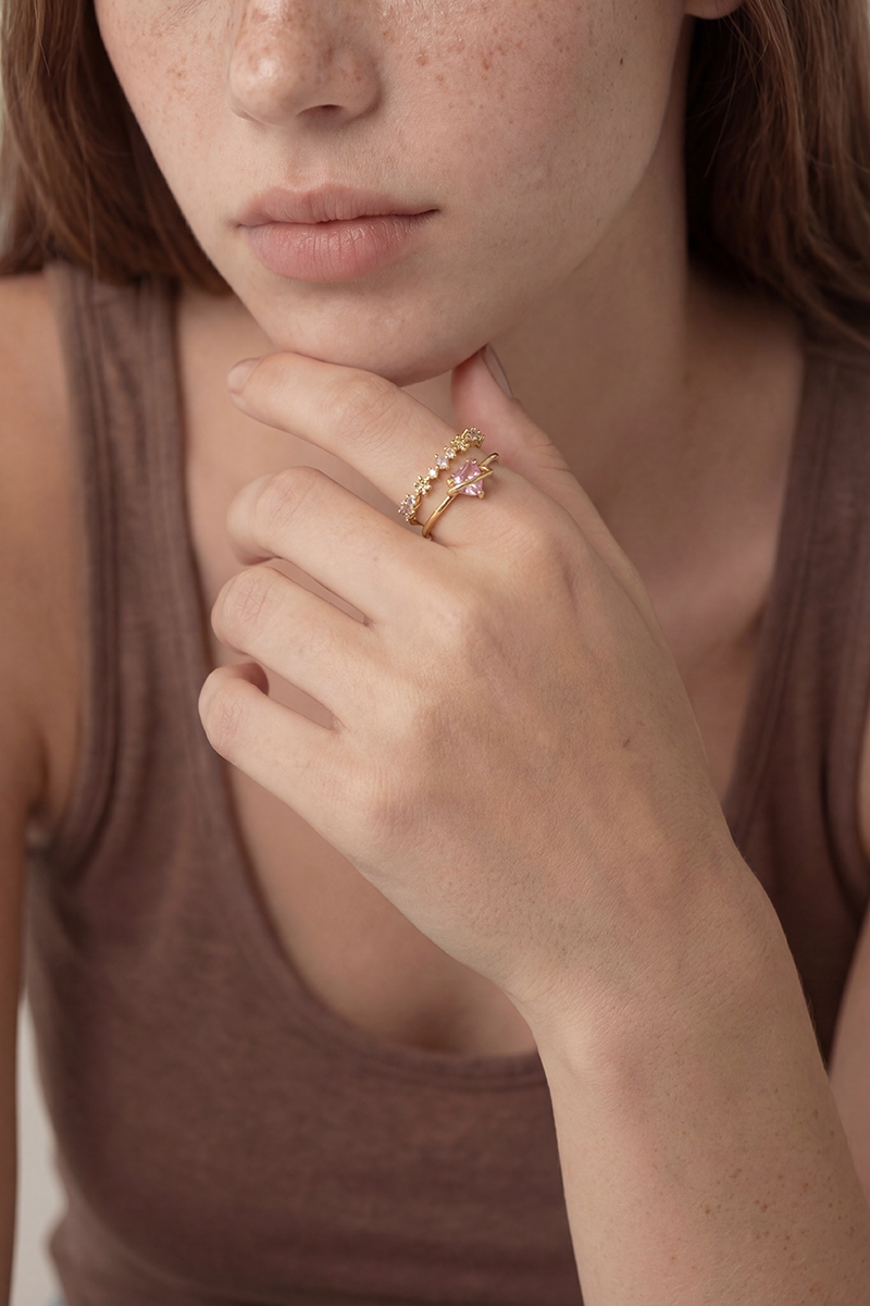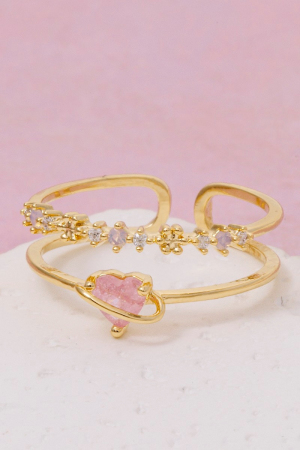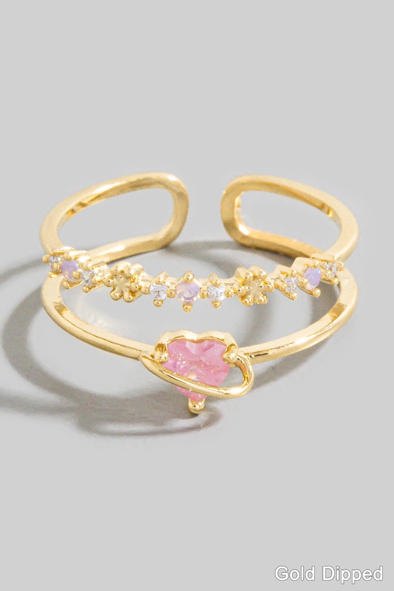 - This ring showcases a timeless two row cubic zirconia heart gold dipped style. Savor the allure of detailed craftsmanship in this exquisite ring.