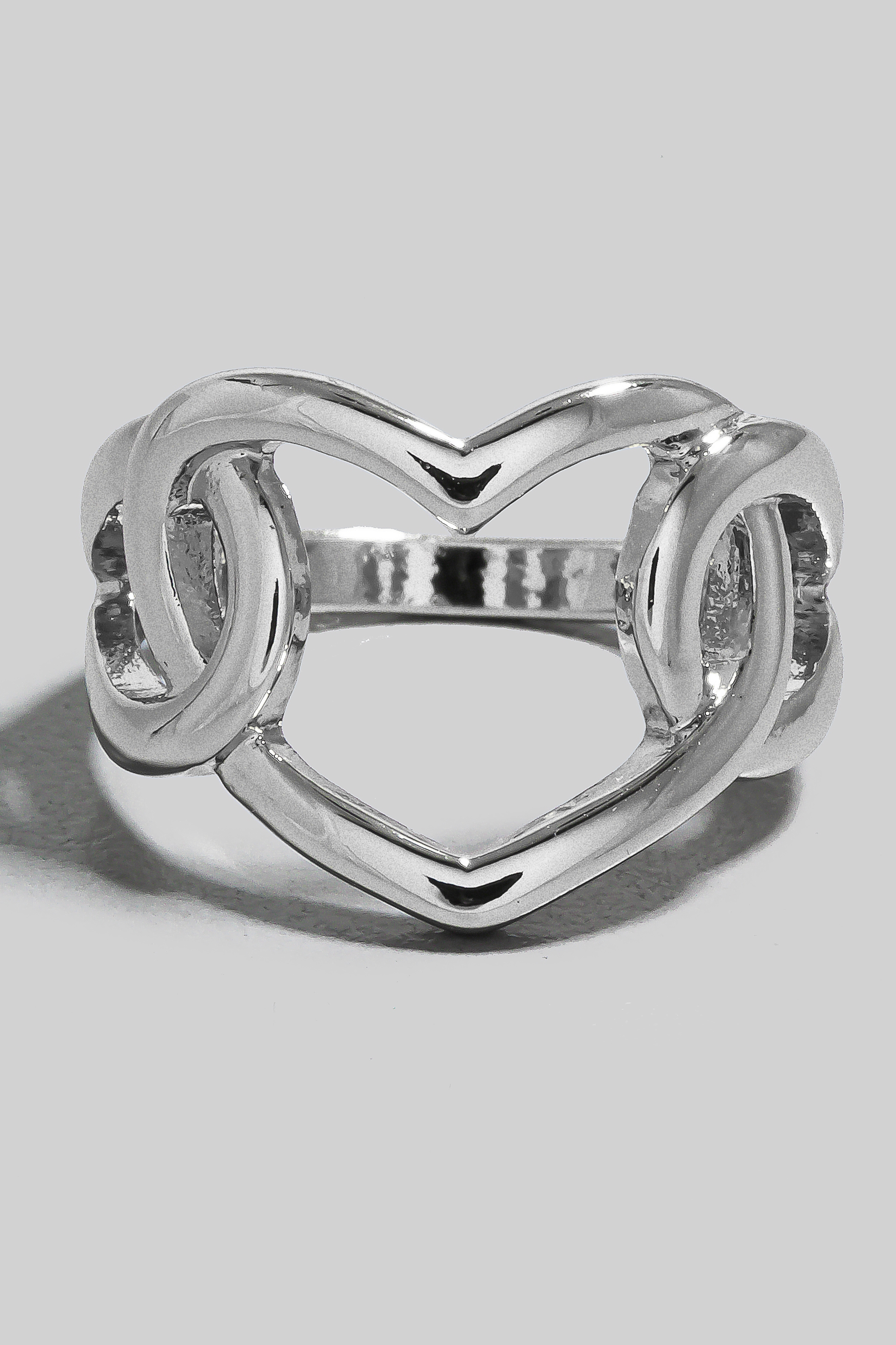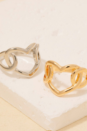 • This ring showcases a unique metallic heart link band style. Elevate your ensemble with this ring that effortlessly captures the essence of refined fashion.
