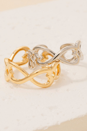 - This ring introduces a stunning metallic hearts link open band style. Delight in the intricate details that make this ring an essential element in expressing your fashion identity.