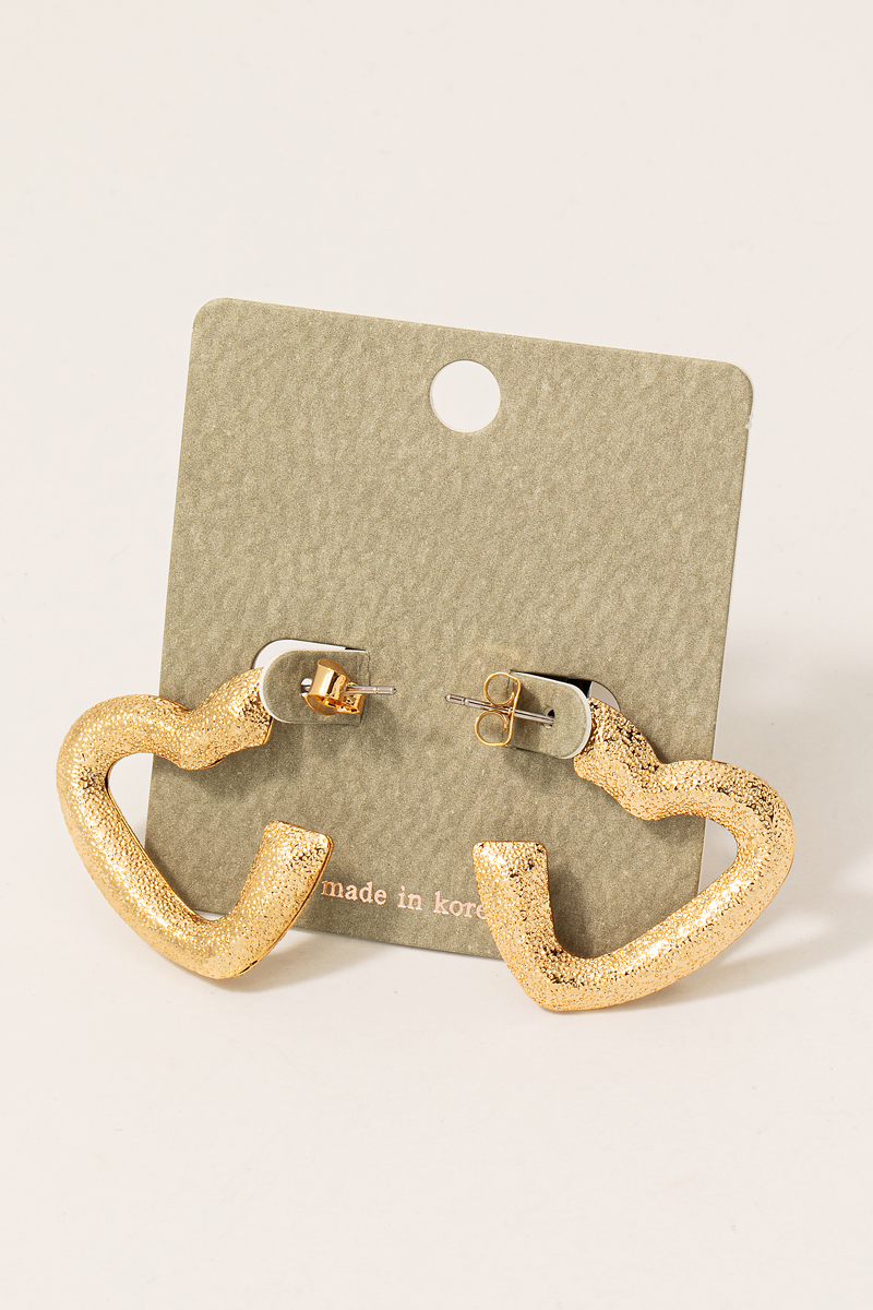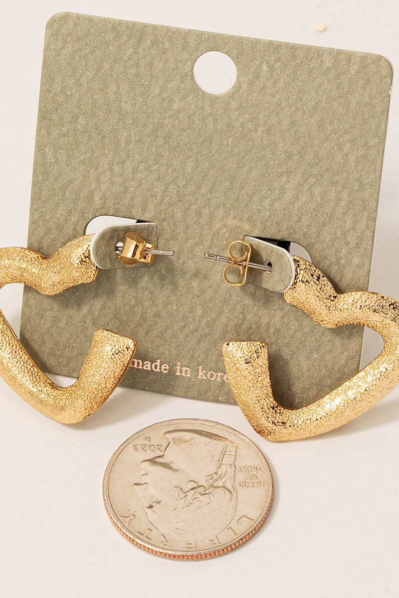 • This pair of hoop earrings introduces a stunning rough textured heart style. Redefine your look effortlessly with this standout, on-trend piece.