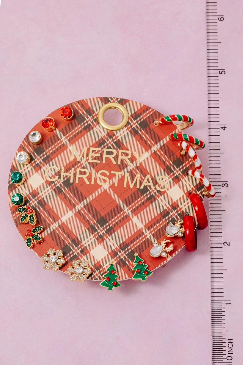 - This pair of earrings introduces a stunning assorted christmas themed set style. Revel in the intricate design that effortlessly distinguishes this pair of earrings, making it a statement piece.