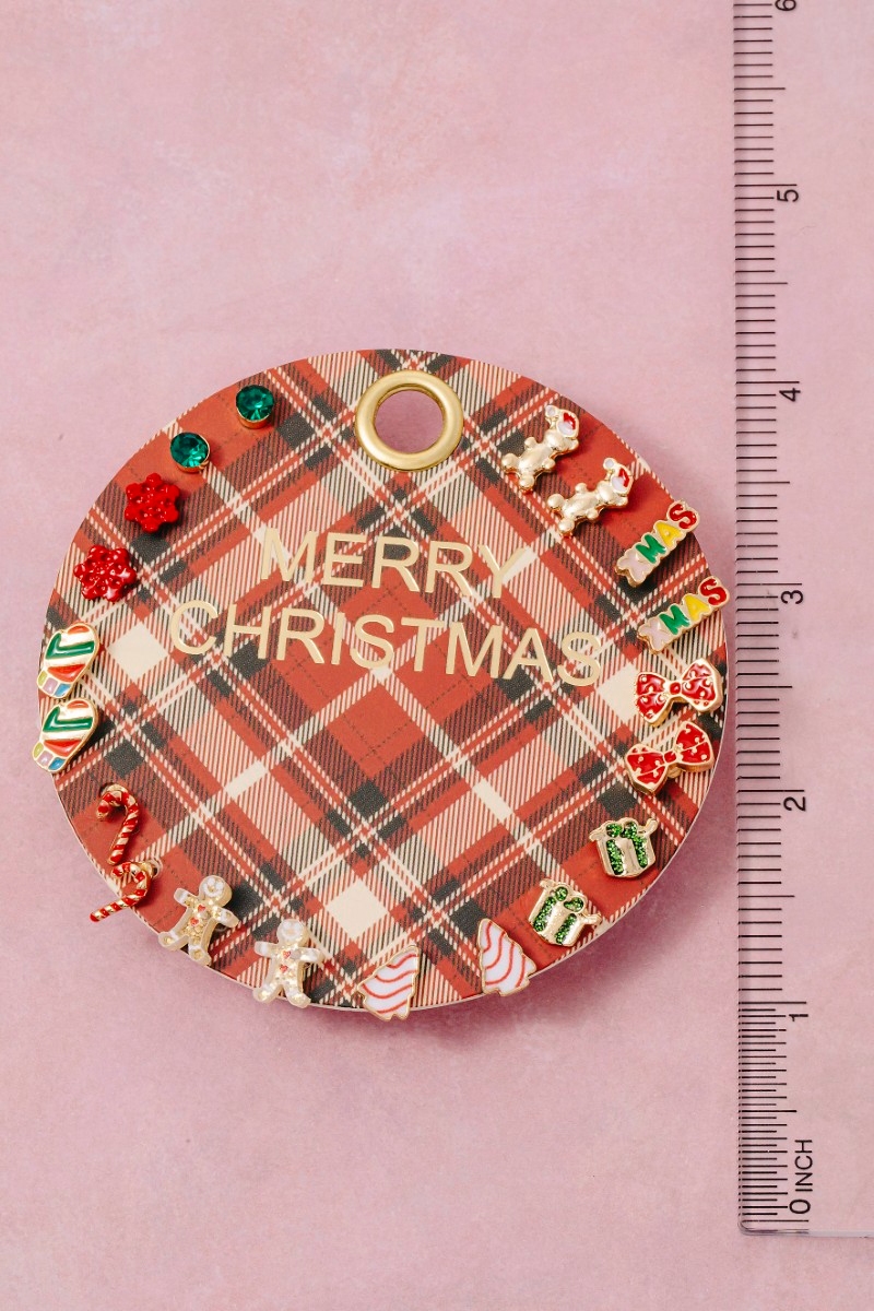 - This pair of earrings features a fashionable assorted merry christmas themed set style. Explore a refined sense of style with this pair of earrings, seamlessly elevating the chic factor of your look.