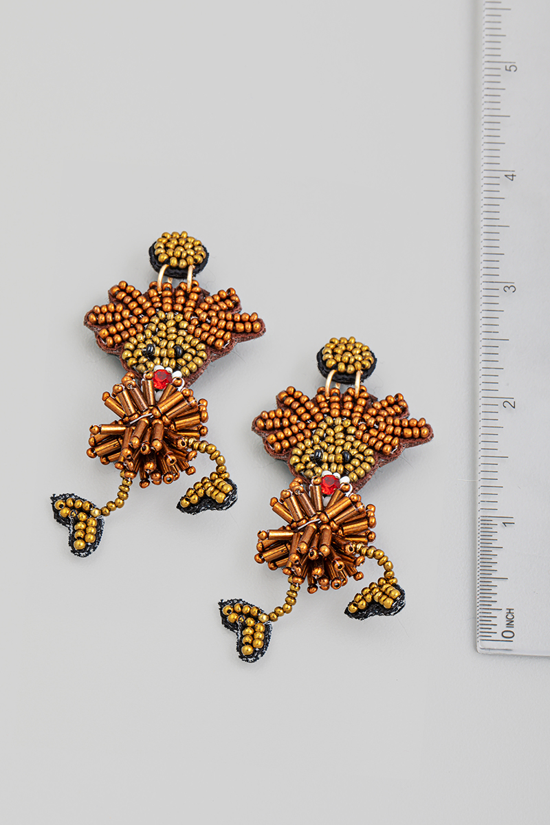 - These beaded Rudolph the Red Nosed Reindeer earrings are the perfect addition to your holiday attire! You will receive nothing but compliments at your holiday and Christmas parties with these gorgeous and fun statement earrings. The legs even have little gold hooves attached, how fun!