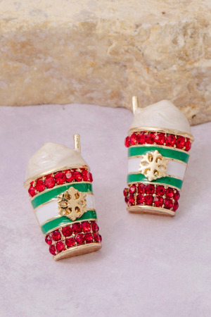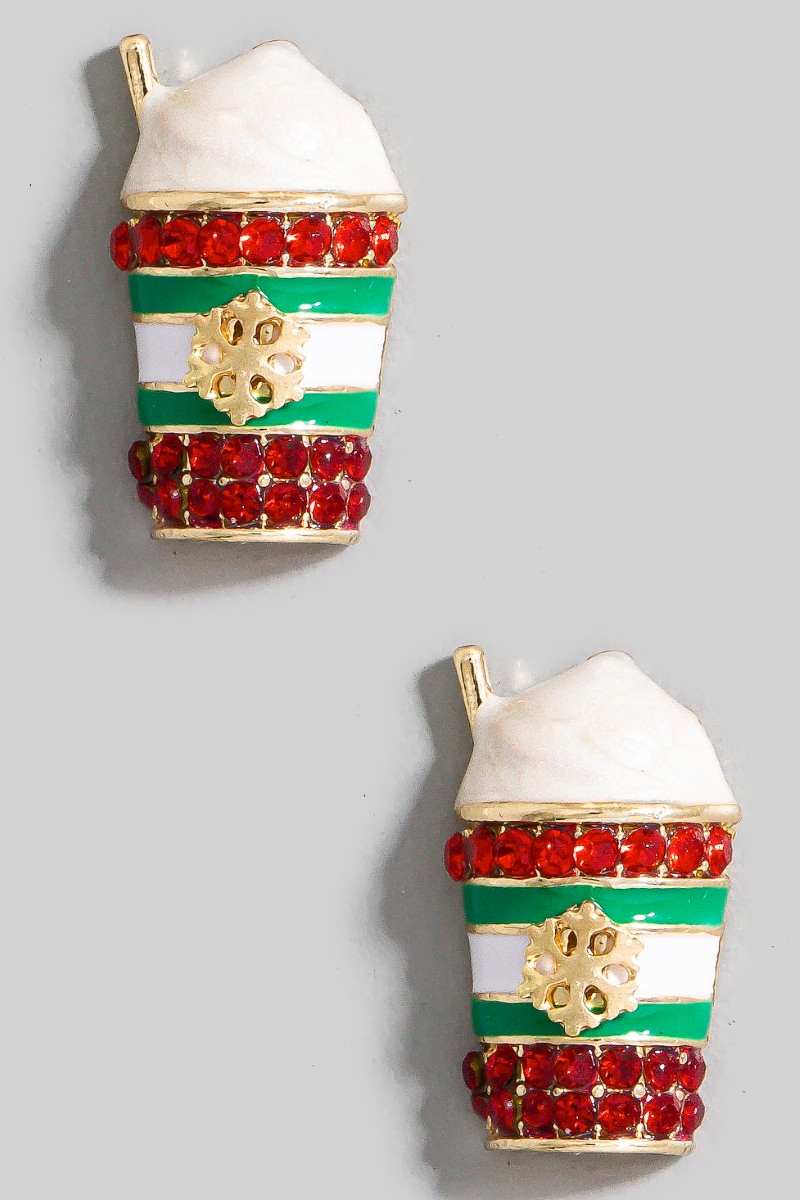 • This pair of stud earrings displays a vibrant enamel and pave christmas themed frappe style. Redefine your look effortlessly with this standout, on-trend piece.