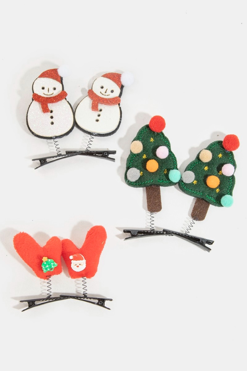 - This hair clip brings a unique springy 6pc festive christmas set style. Experience a subtle blend of modernity and classic charm as this hair clip effortlessly adorns your ensemble.