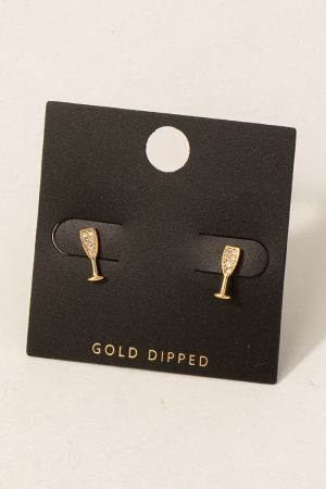 • Gold Dipped Cz Pave Champagne Glass Stud Earrings