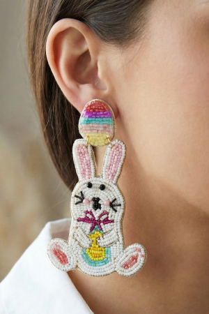 • Seed Beaded Easter Bunner And Egg Stud Dangle Earrings