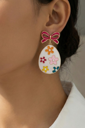 Bow And Floral Enamel Egg Easter Dangle Earrings