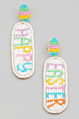 • Seed Beaded Happy Easter Earrings