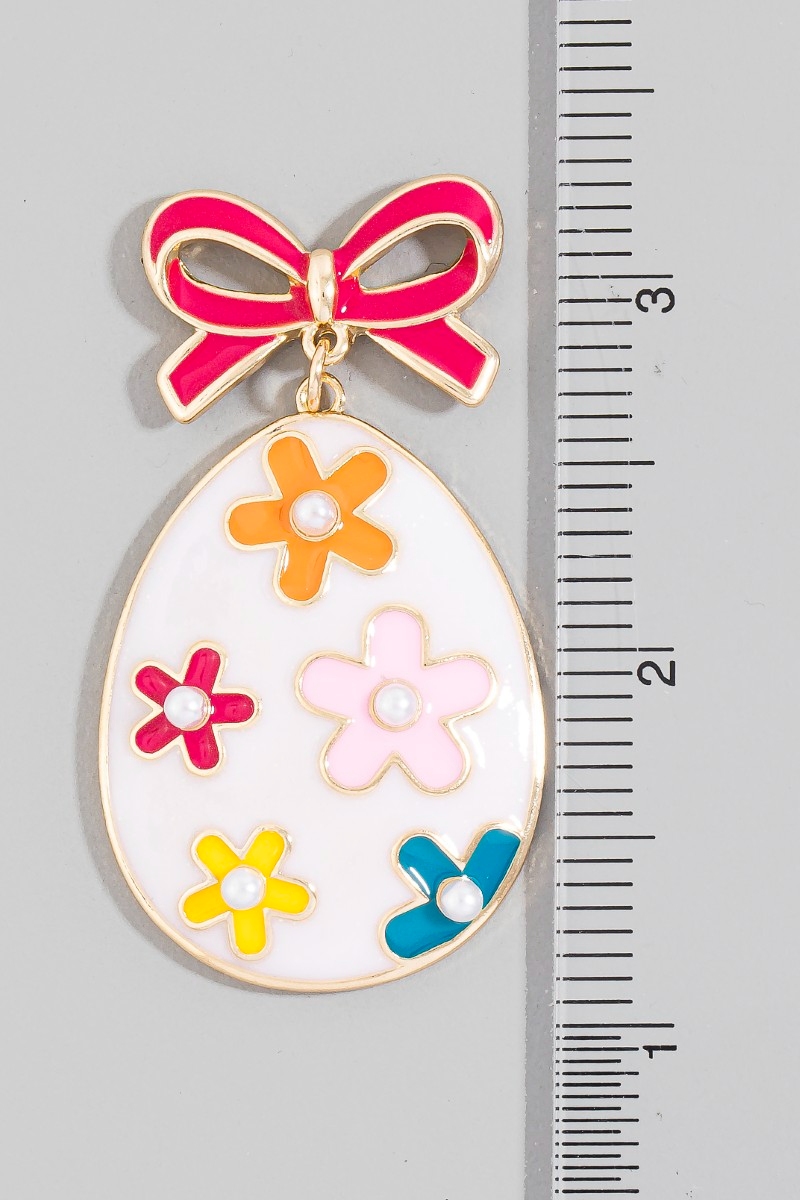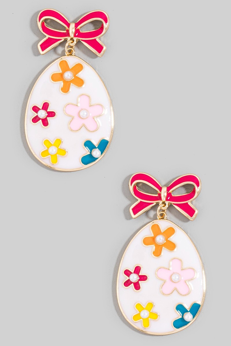 - This pair of dangle earrings displays a fashionable bow and floral enamel egg easter style. Indulge in the allure of exquisite craftsmanship as this pair of dangle earrings effortlessly adds a touch of luxury to your attire.