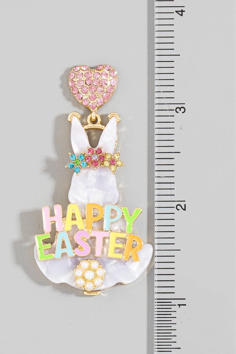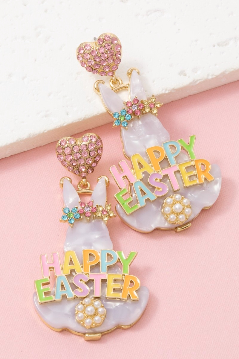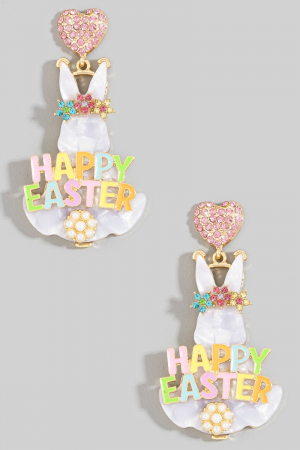 - This pair of dangle earrings introduces a unique happy easter bunny stud style. Indulge in the artistry of accessorizing with this unique piece.