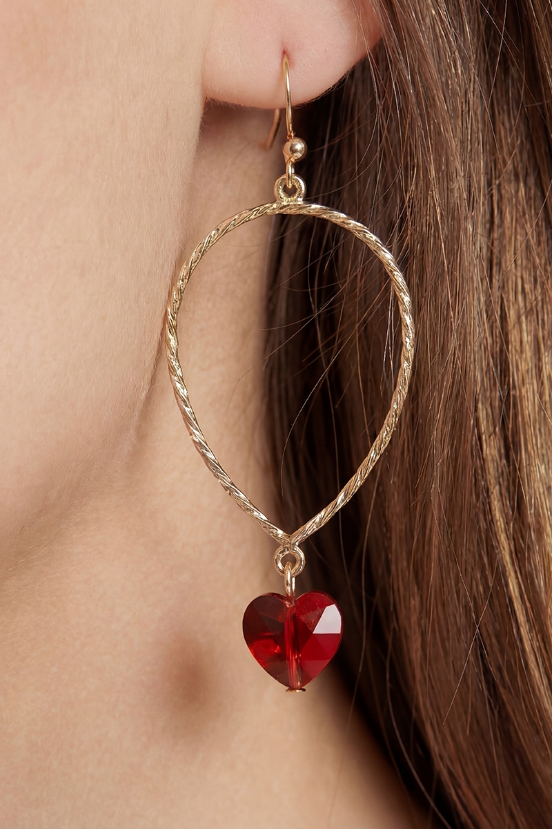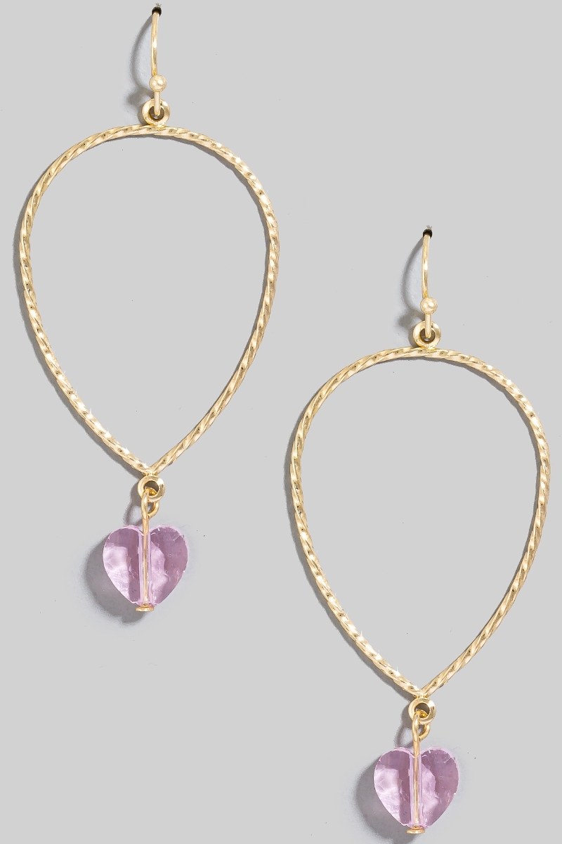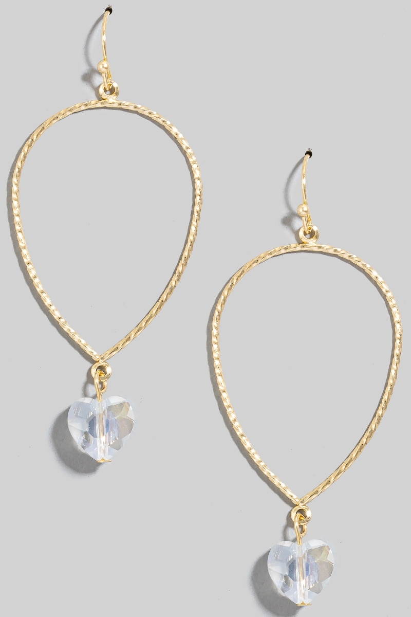 • This pair of dangle earrings introduces a unique faceted glass heart charm tear style. Elevate your ensemble with this chic, timeless pair of dangle earrings.