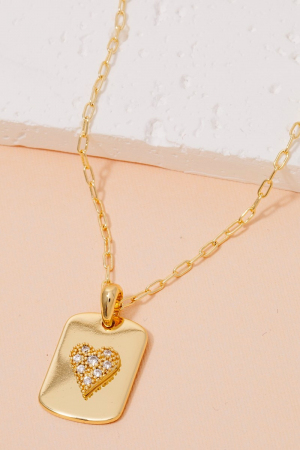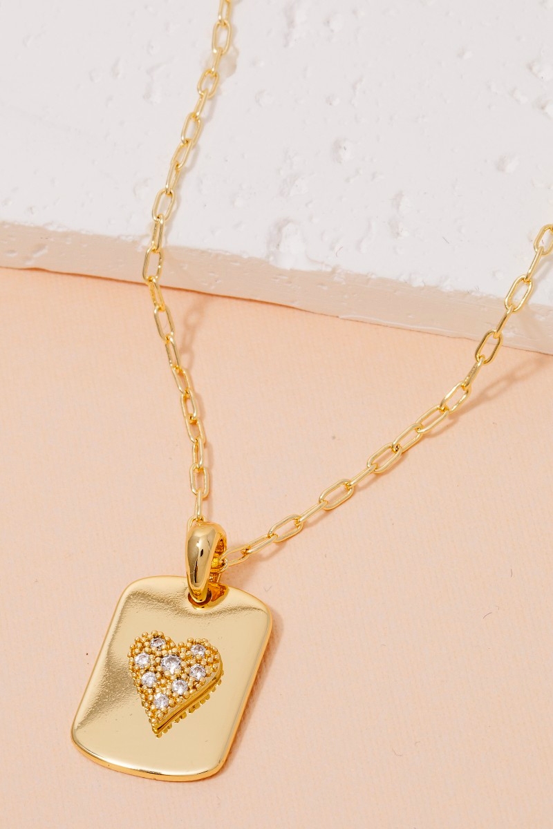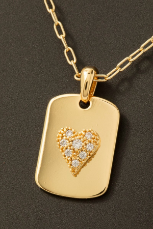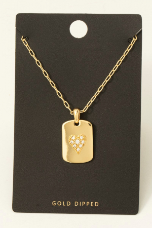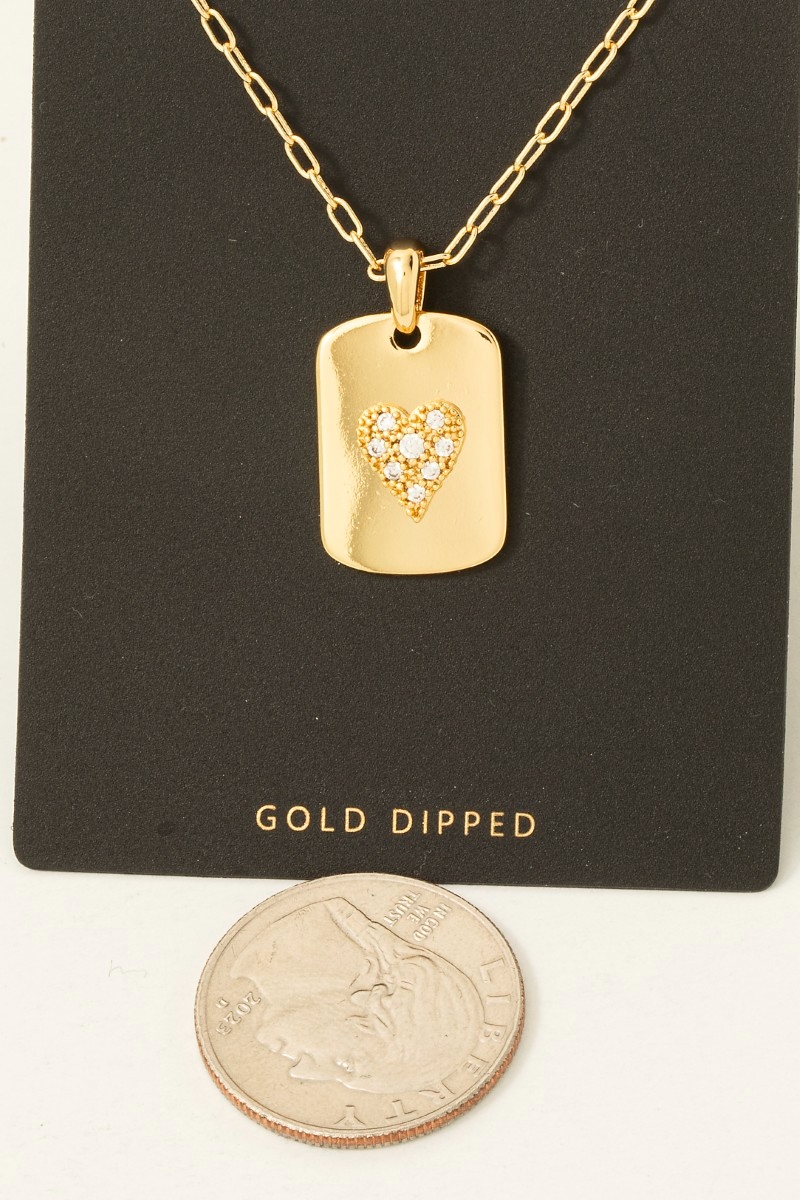 - this columbus jewelry necklace displays a vibrant gold dipped cubic zirconia heart dog tag pendant style. Elevate your ensemble with this chic, timeless necklace.