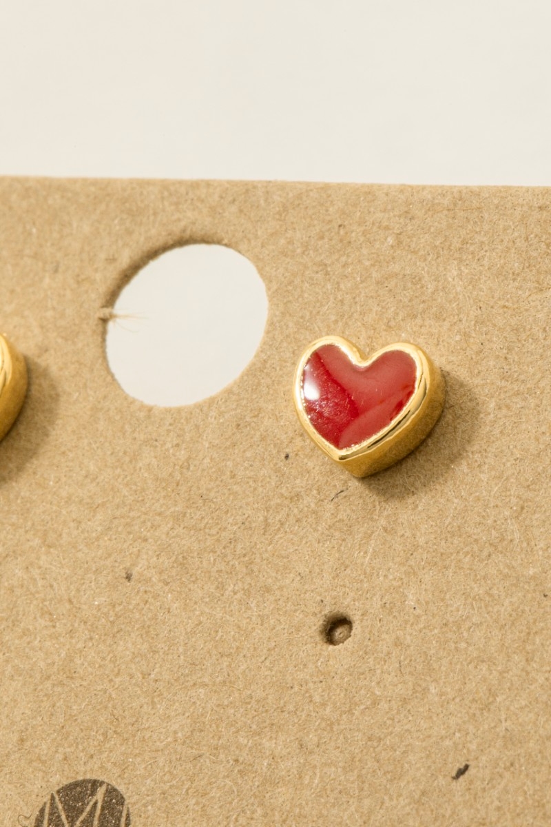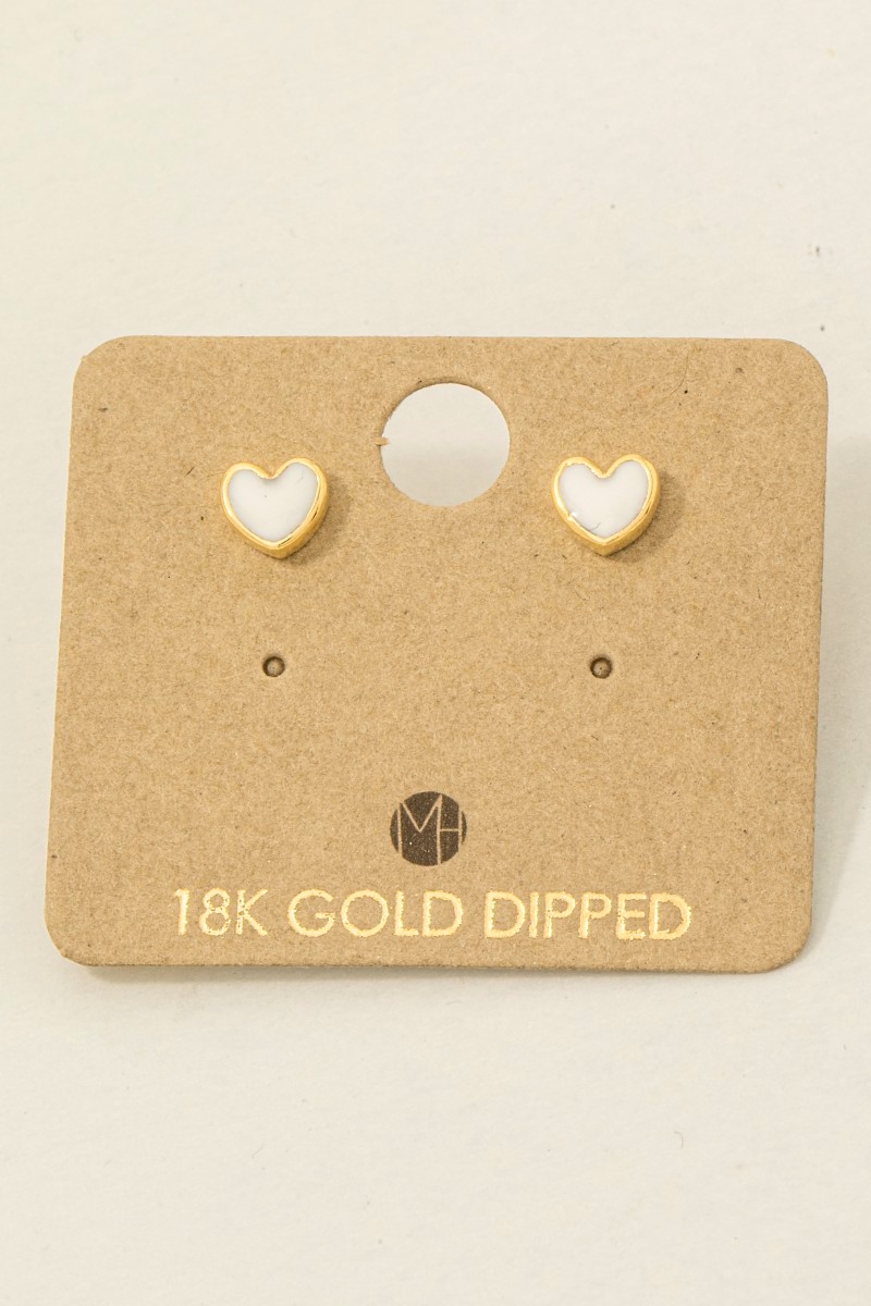 • This trending pair of earrings displays a fashionable gold dipped mini enamel heart stud earrings style. Embark on a journey of sartorial refinement as this trending pair of earrings effortlessly complements your fashion sense.