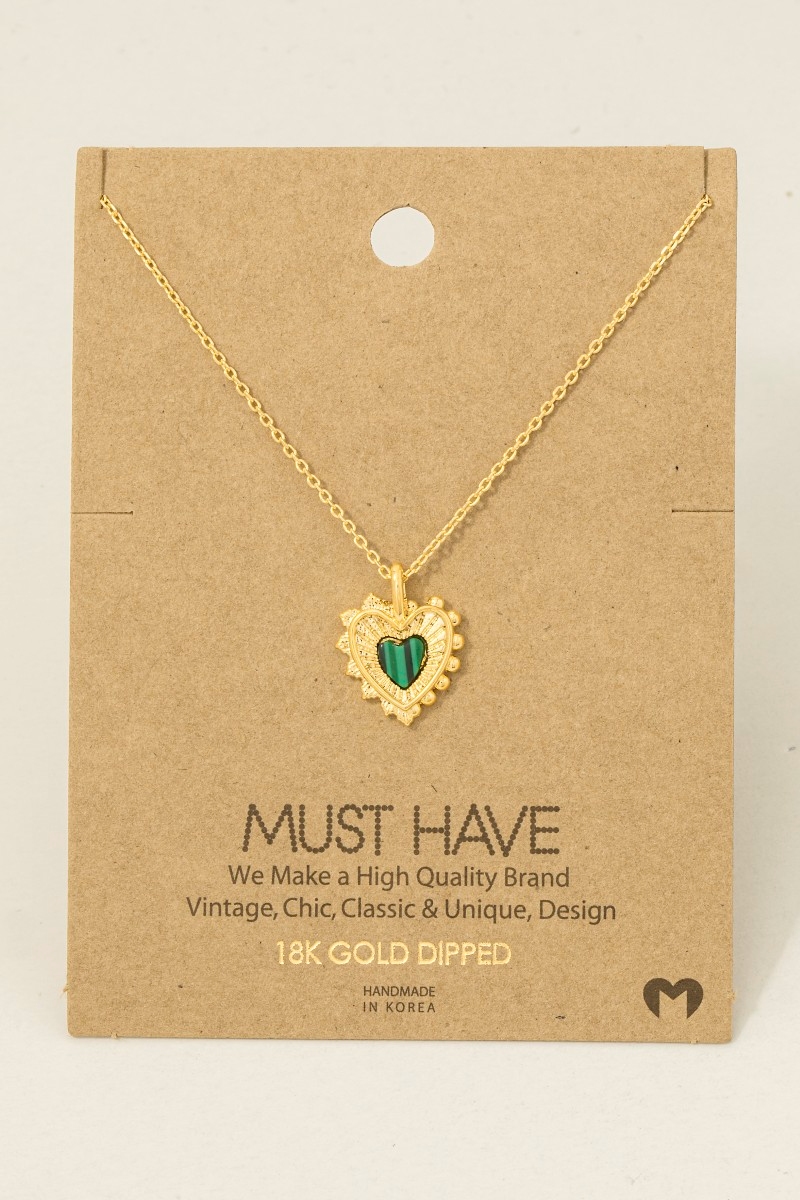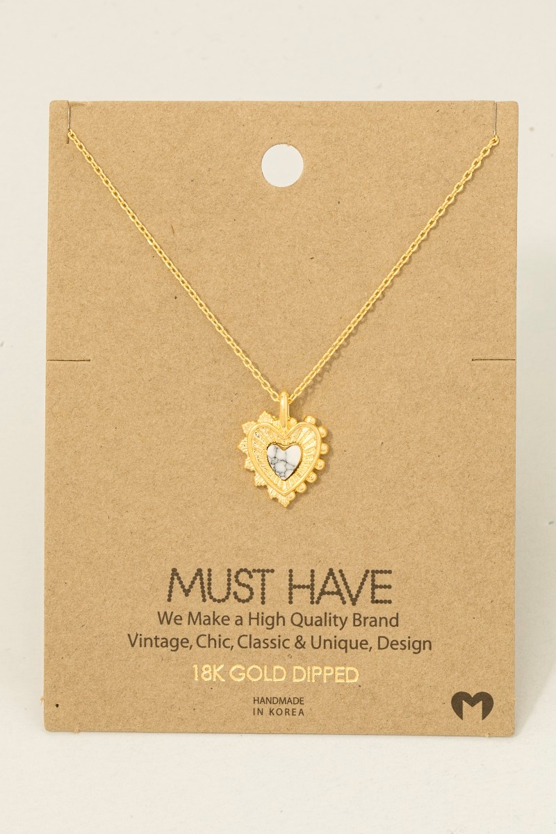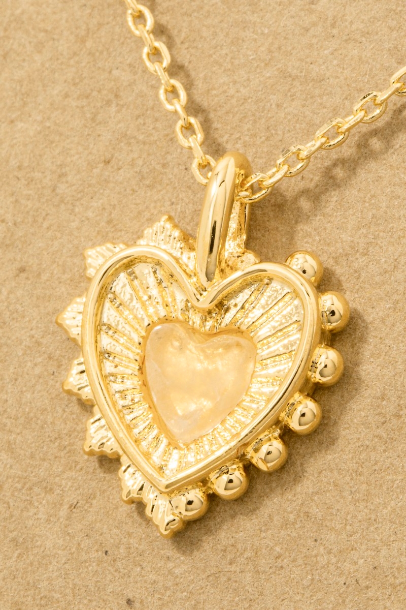 • This trending necklace introduces a stunning gold dipped stone set heart pendant necklace style. Celebrate individuality with this trending necklace that effortlessly expresses your unique sense of style.