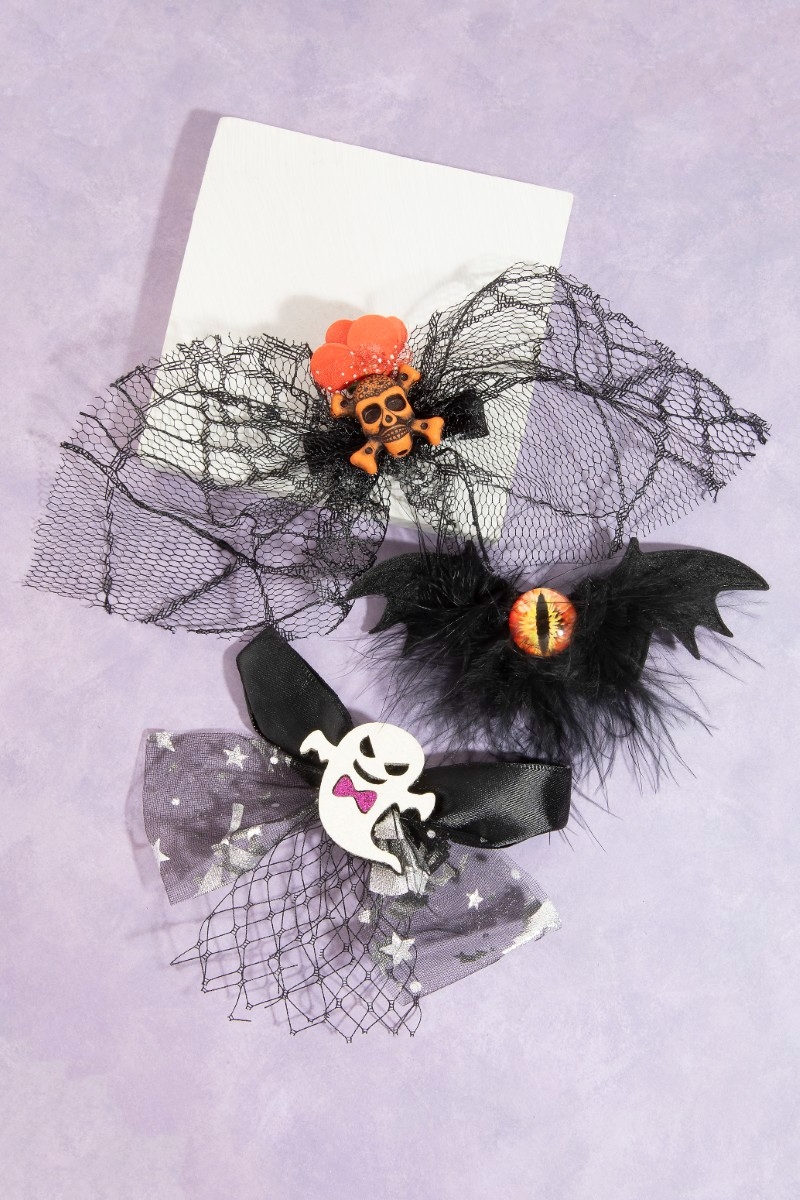 - This hair clip showcases a unique 3pc assorted halloween ribbon bow s style. Explore a refined sense of style with this hair clip, seamlessly elevating the chic factor of your look.