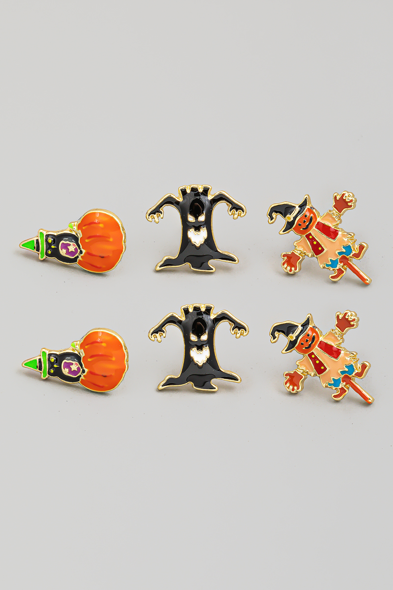 Mixed Enamel 3Pc Halloween Stud Earrings Set