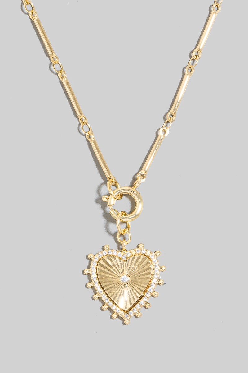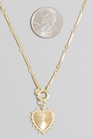 - This chain necklace introduces a unique halo set heart pendant bar style. Indulge in the artistry of accessorizing with this unique piece.