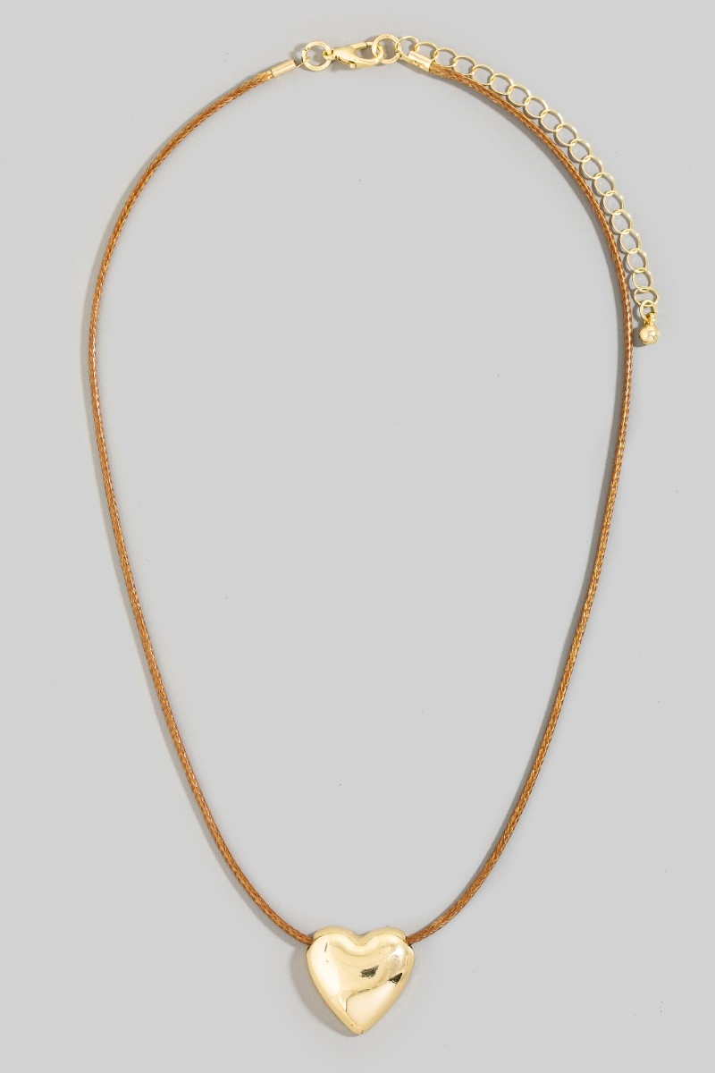 - This necklace features a fashionable heart pendant cord style. Unveil modern elegance with this subtly intricate necklace.