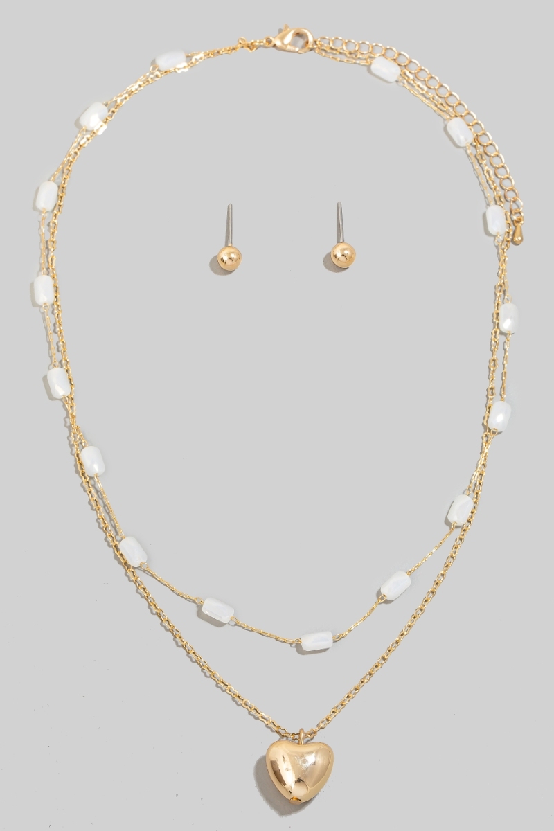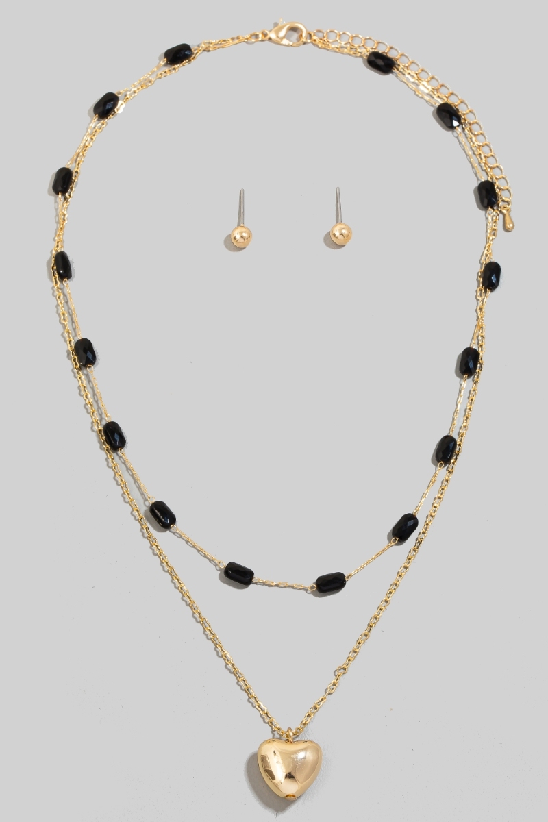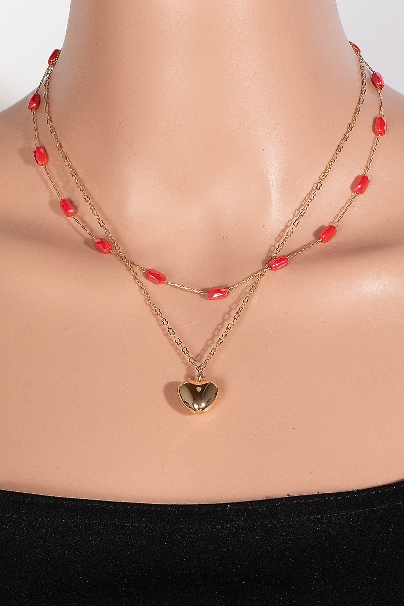 • This layered necklace displays a fashionable heart pendant glass station beaded set style. Delight in the intricate details that make this layered necklace an essential element in expressing your fashion identity.