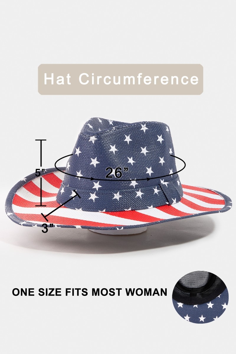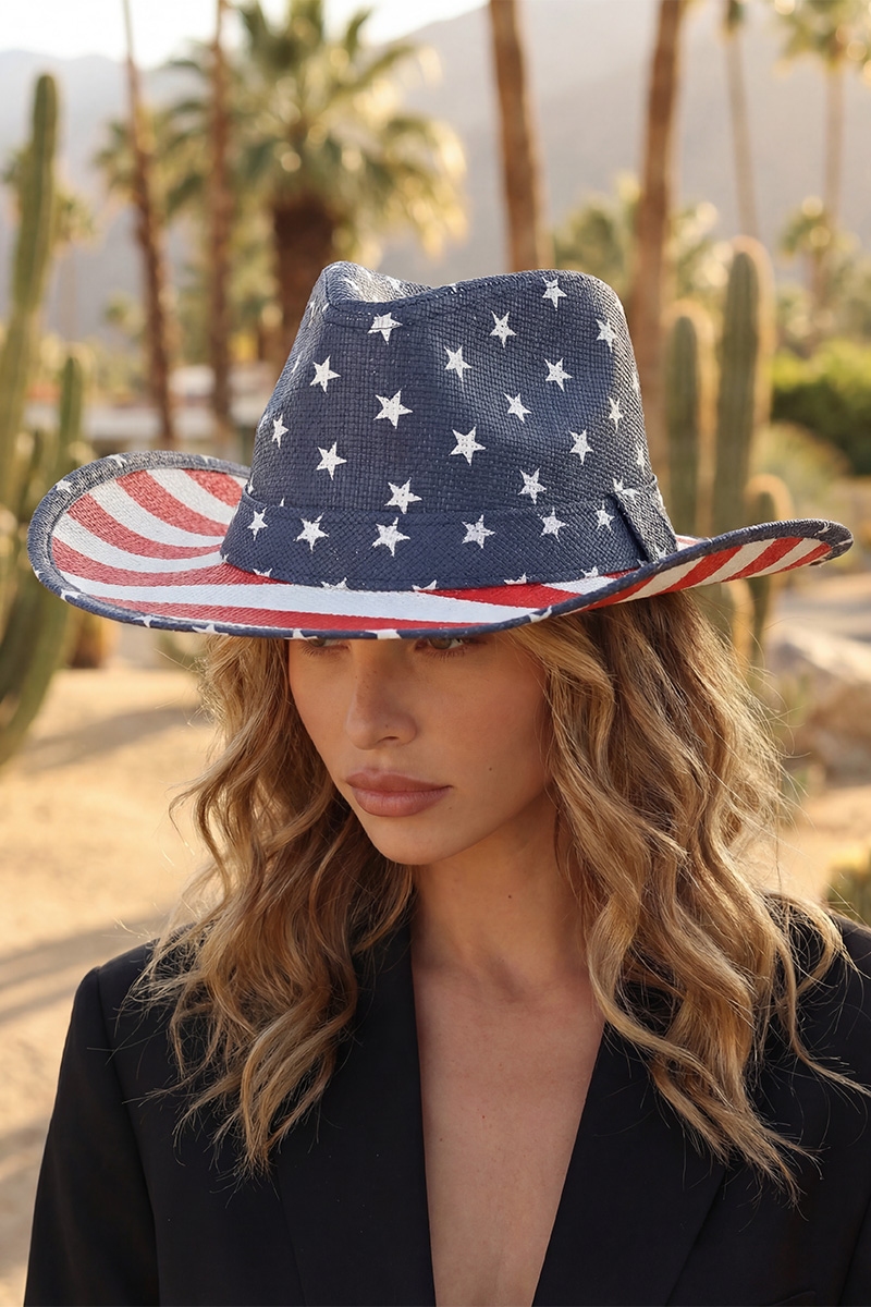 - This cowboy hat brings a luxurious patriotic classic american flag style. Immerse yourself in the details of design, as this cowboy hat effortlessly becomes a conversation starter.