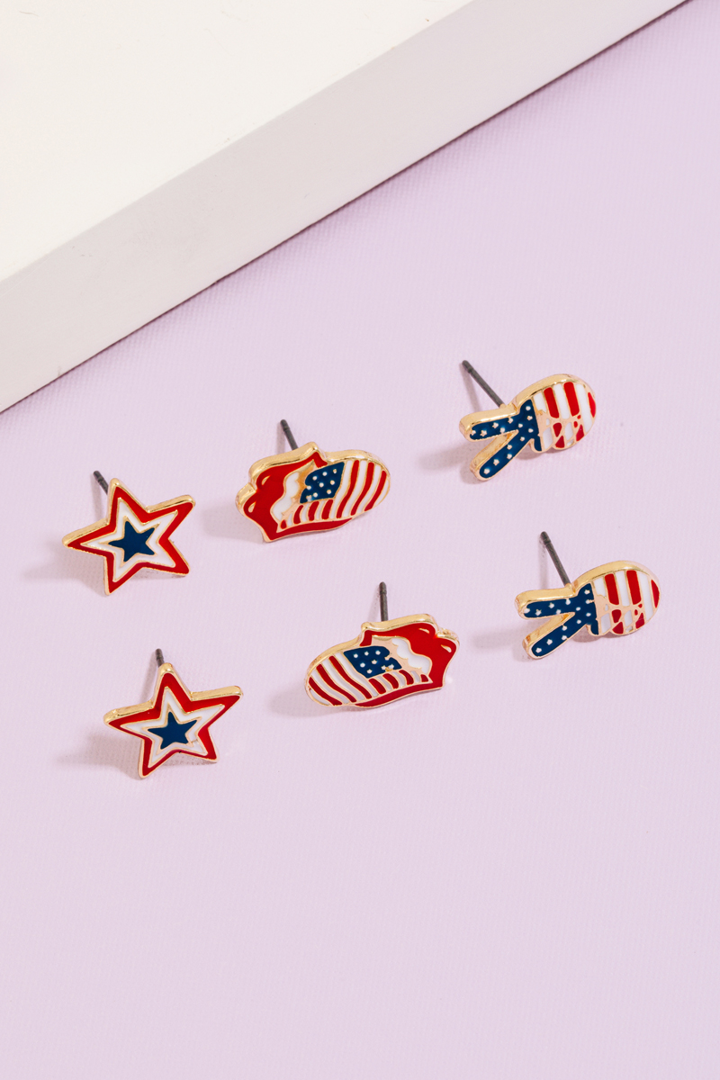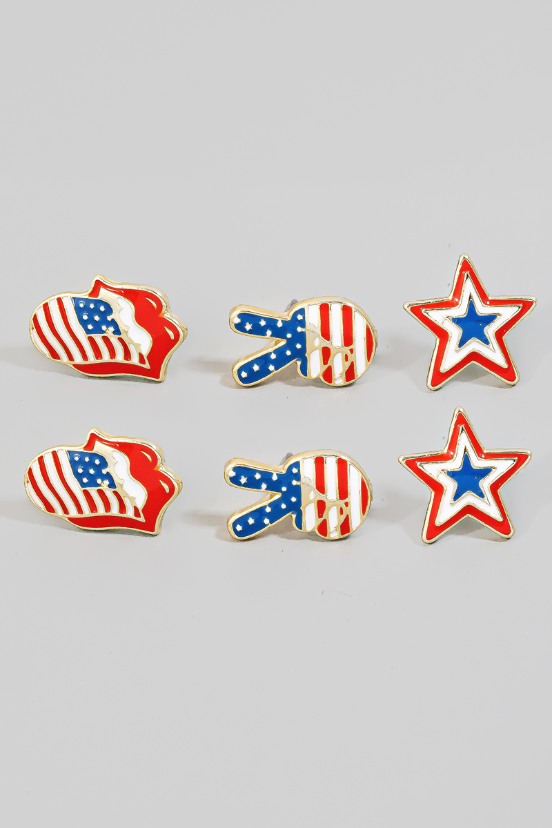 • This pair of stud earrings adds a modern assorted american theme epoxy style. Discover the perfect balance of subtlety and flair as this accessory effortlessly completes your look.