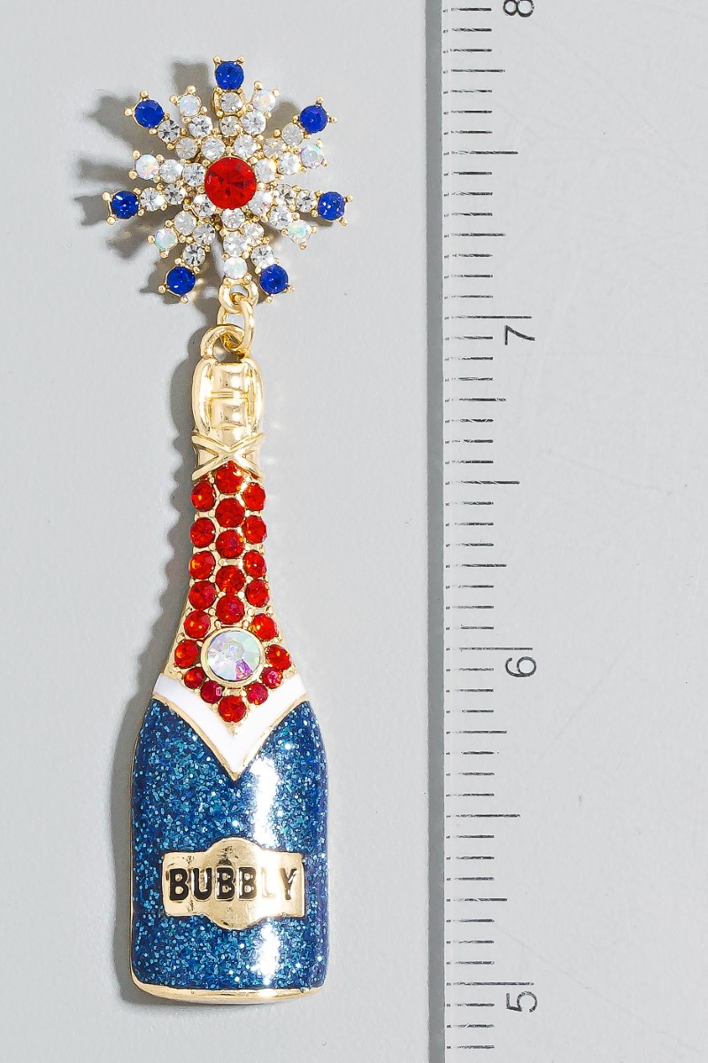 - This pair of dangle earrings displays a vibrant usa 4th of july bubble bottle style. Experience the joy of accessorizing with this piece that effortlessly combines versatility and charm.