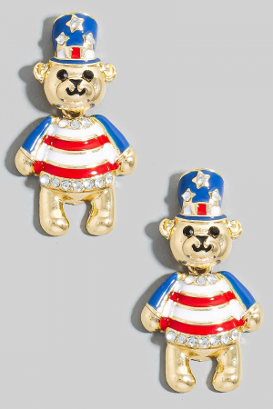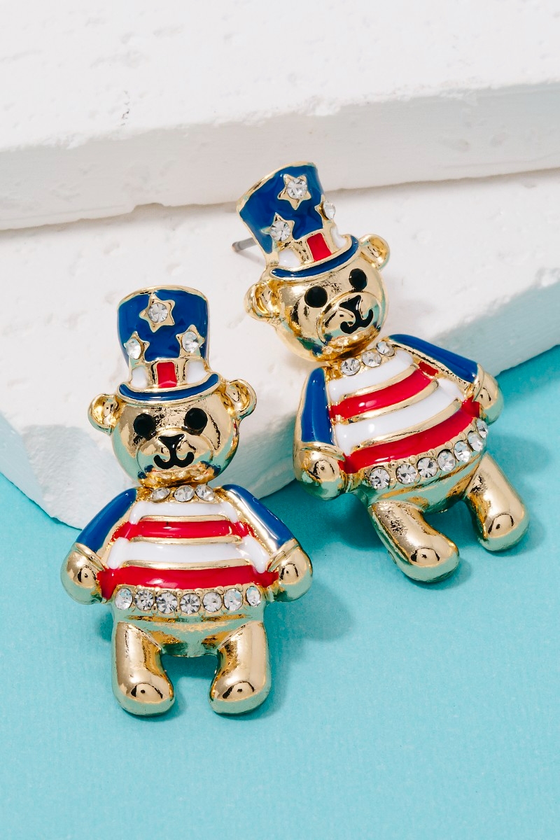 - This pair of drop earrings brings a luxurious usa 4th of july teddy bear stud style. Experience a subtle blend of modernity and classic charm as this pair of drop earrings effortlessly adorns your ensemble.