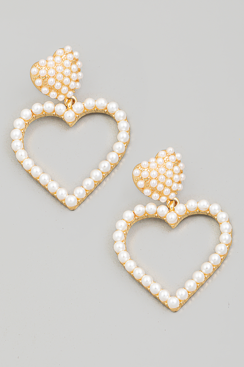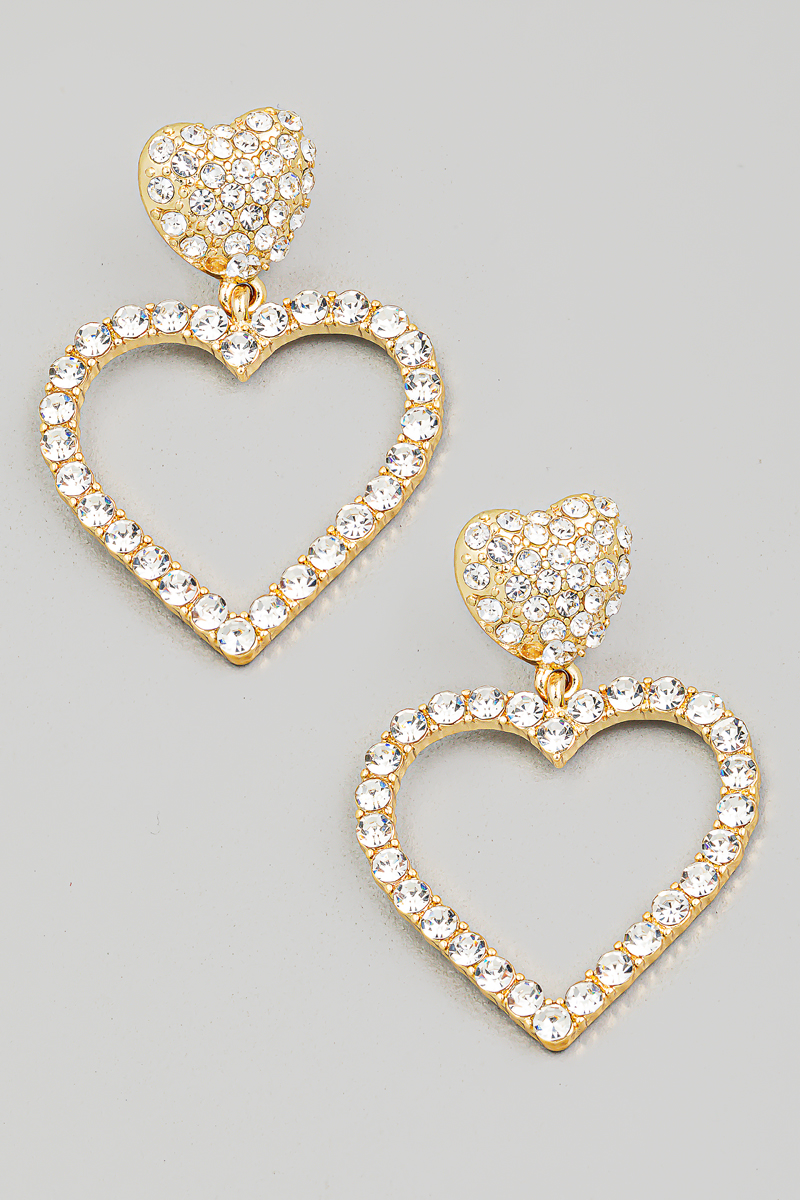 • This pair of drop earrings brings a unique pave heart cutout style. Delight in the nuanced details that make this pair of drop earrings a testament to fine design and impeccable taste.