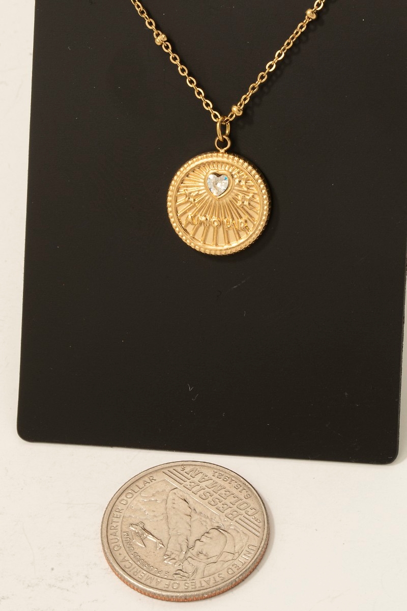 - This necklace brings a unique stainless steel heart amour coin pendant style. Step into a world of refined taste as this necklace effortlessly refines the details of your outfit.