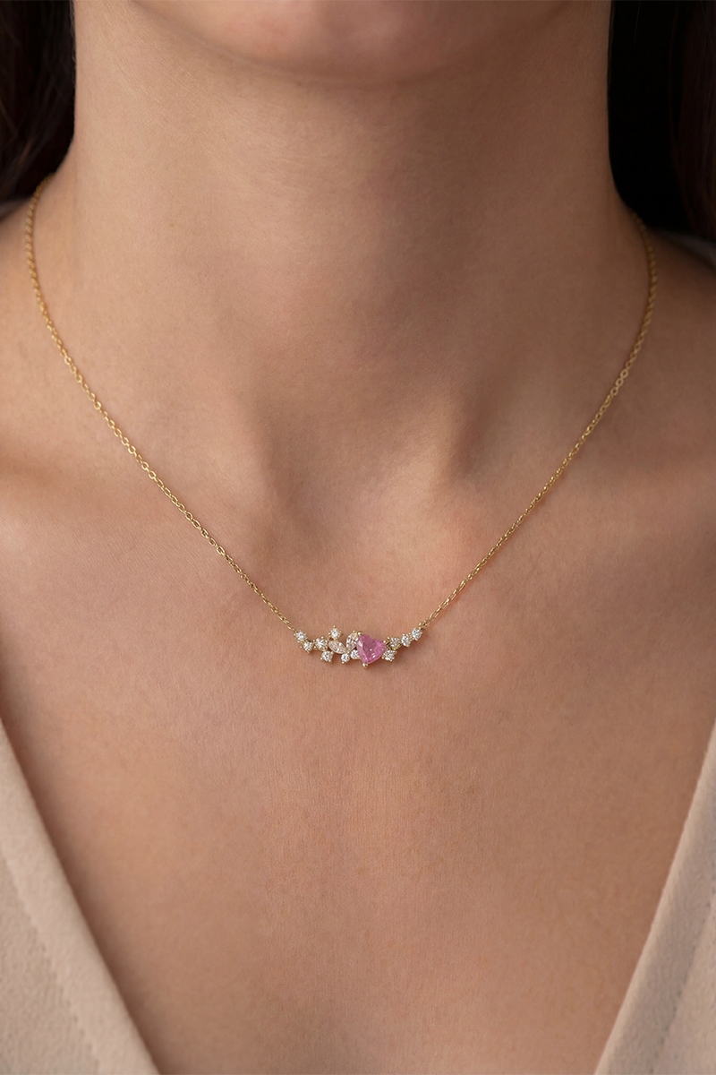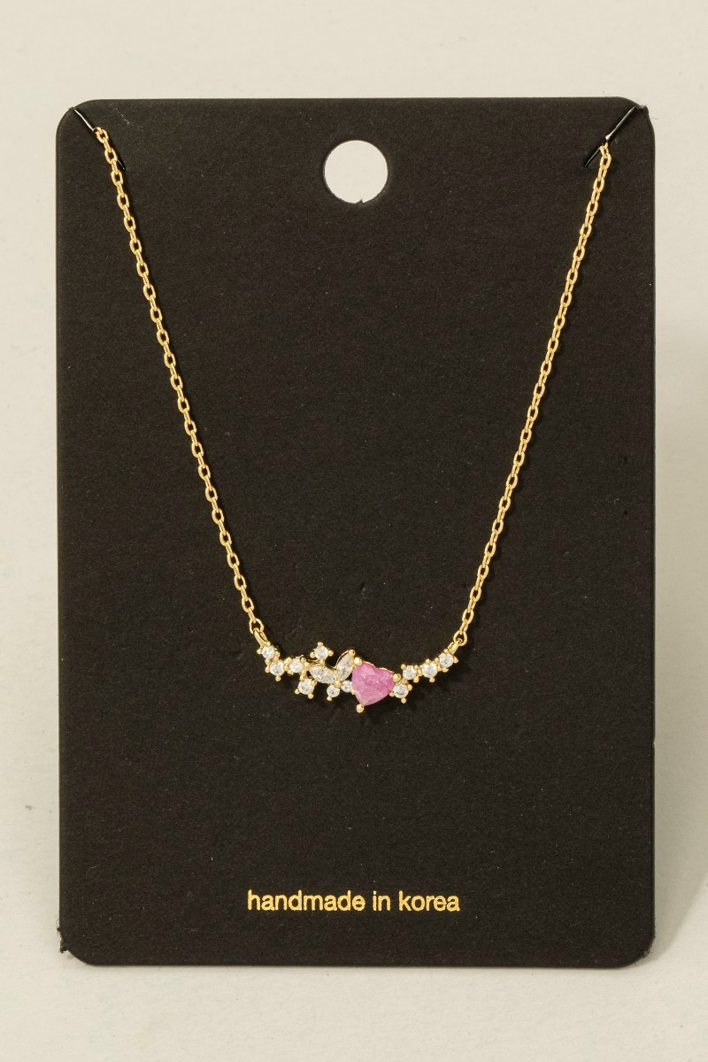 • This necklace adds a modern floral cubic zirconia heart charm style. Delight in the intricate details that make this necklace an essential element in expressing your fashion identity.