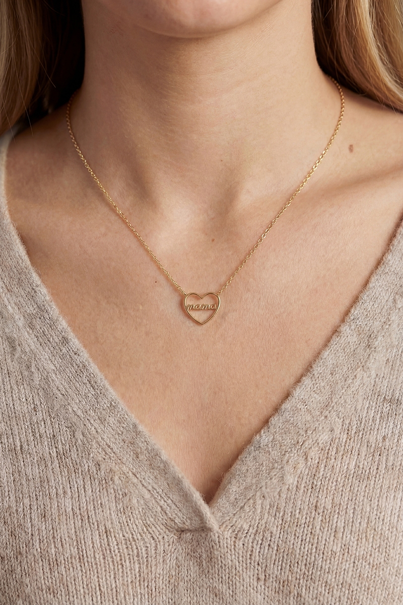 - This necklace brings a stunning gold dipped mama heart pendant style. Experience the joy of accessorizing with this piece that effortlessly combines versatility and charm.