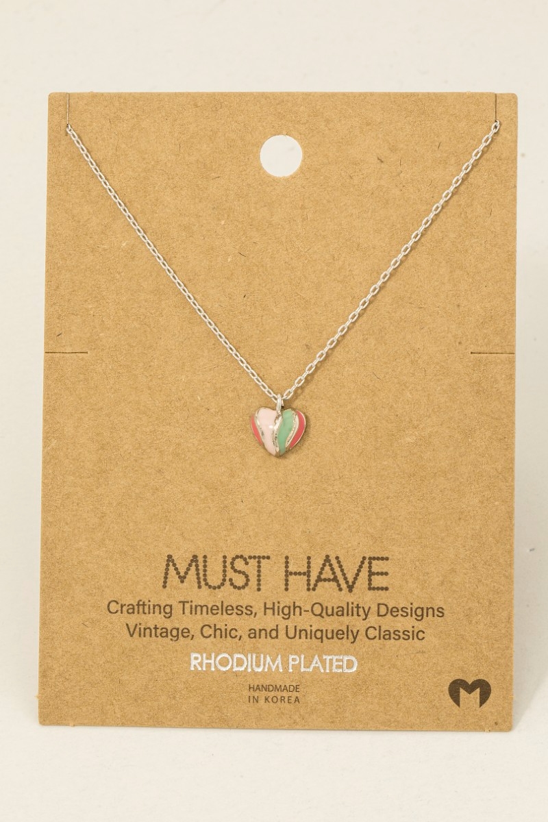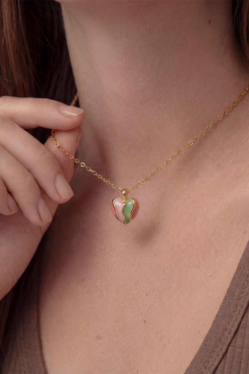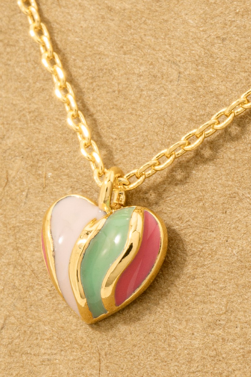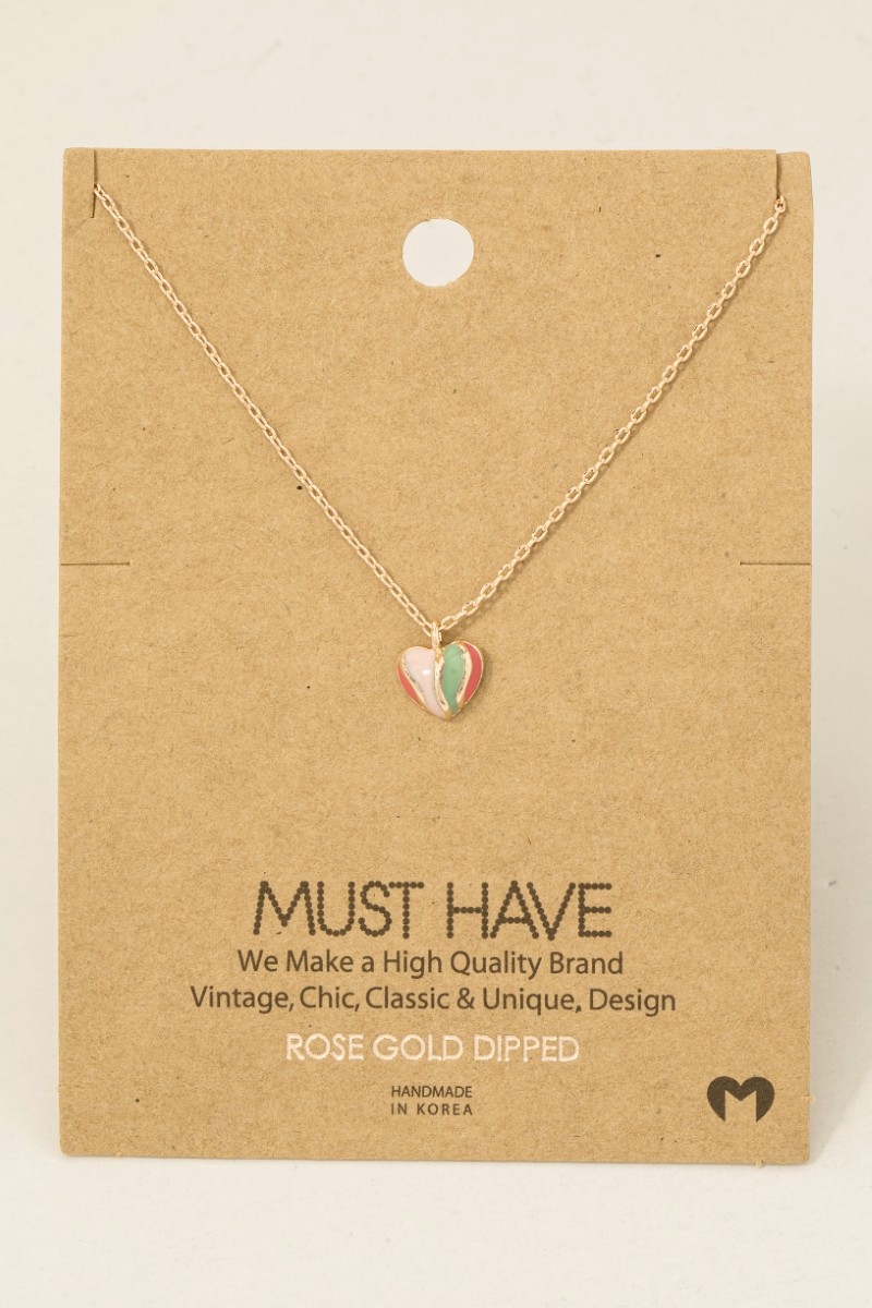 - This trending necklace showcases a timeless gold dipped rainbow enamel heart pendant necklace style. Revel in the intricate design that effortlessly distinguishes this trending necklace, making it a statement piece.