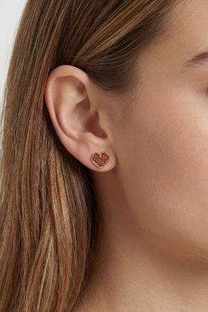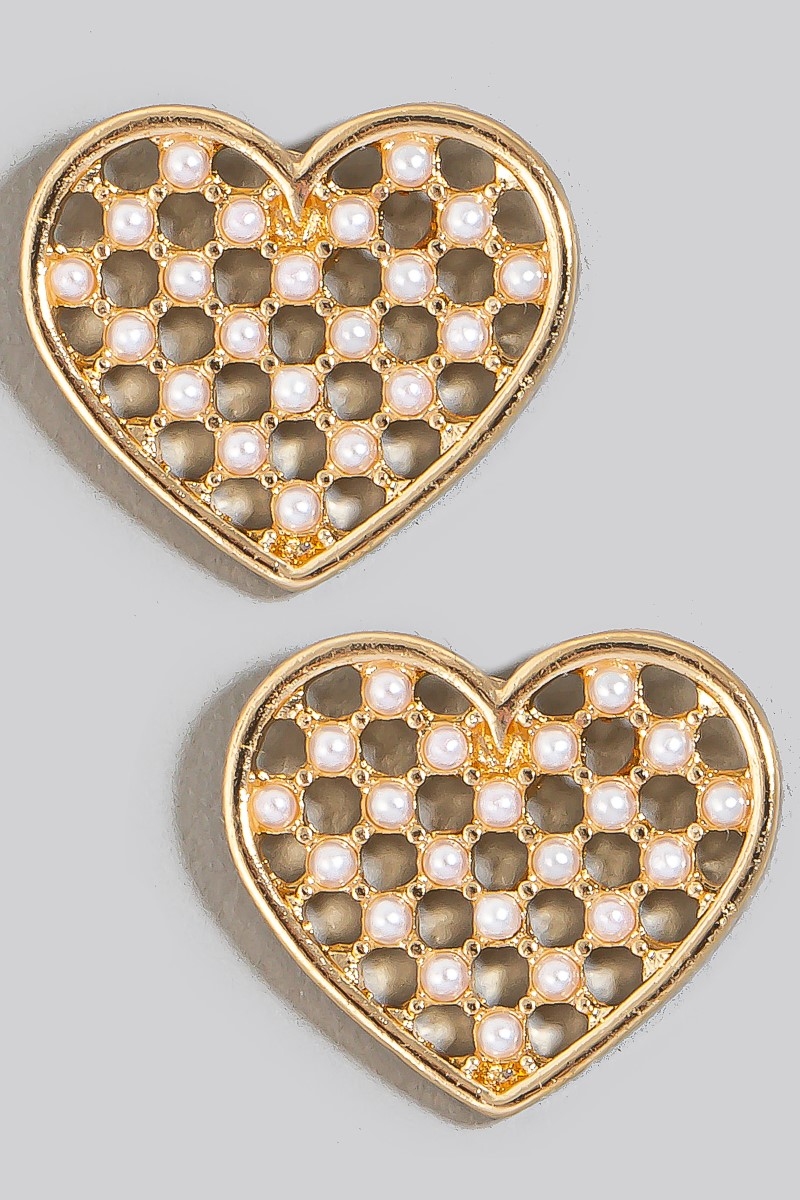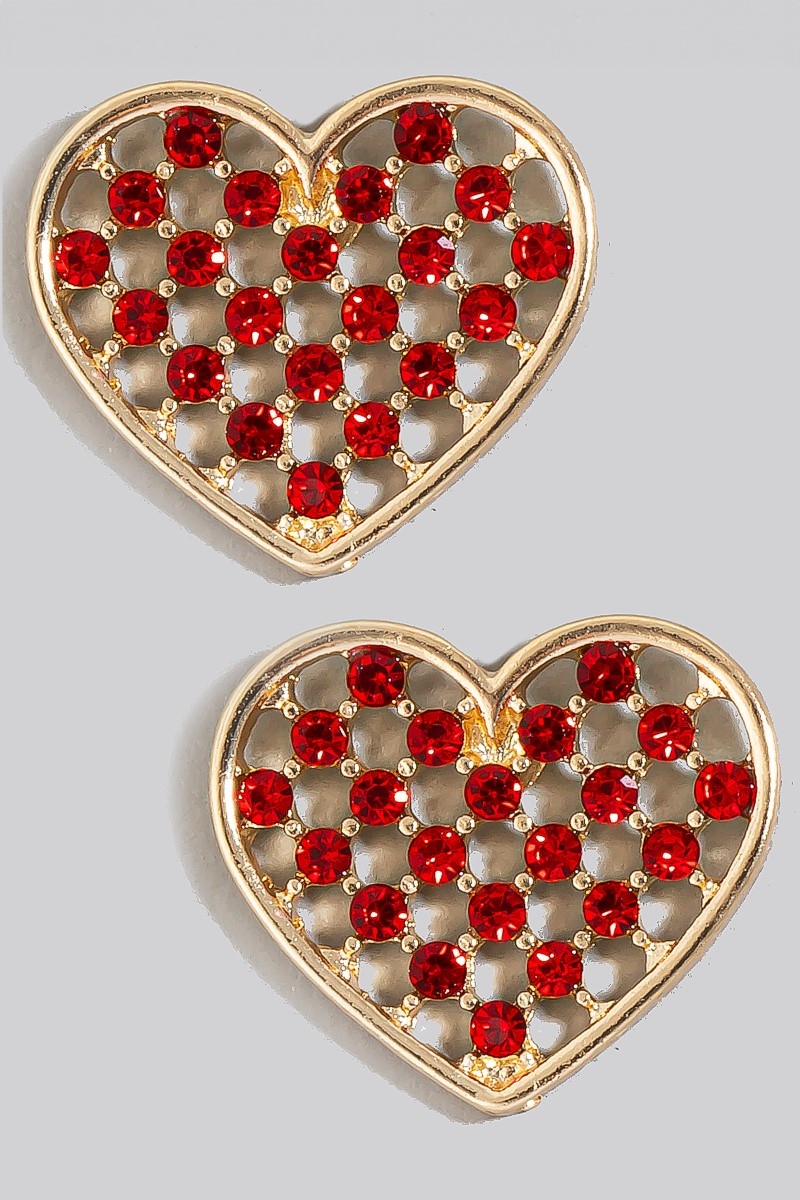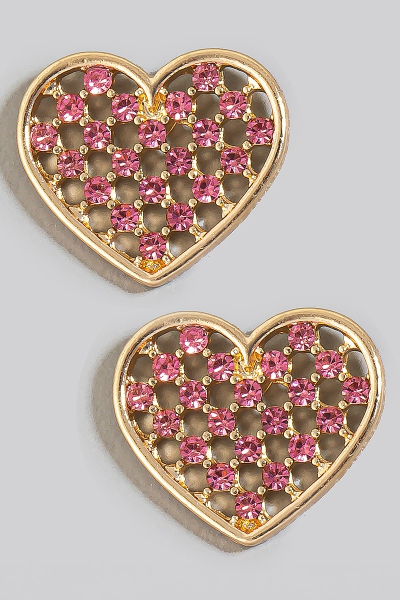 • This pair of stud earrings displays a fashionable pave mesh heart style. Step into a world of refined taste as this pair of stud earrings effortlessly refines the details of your outfit.