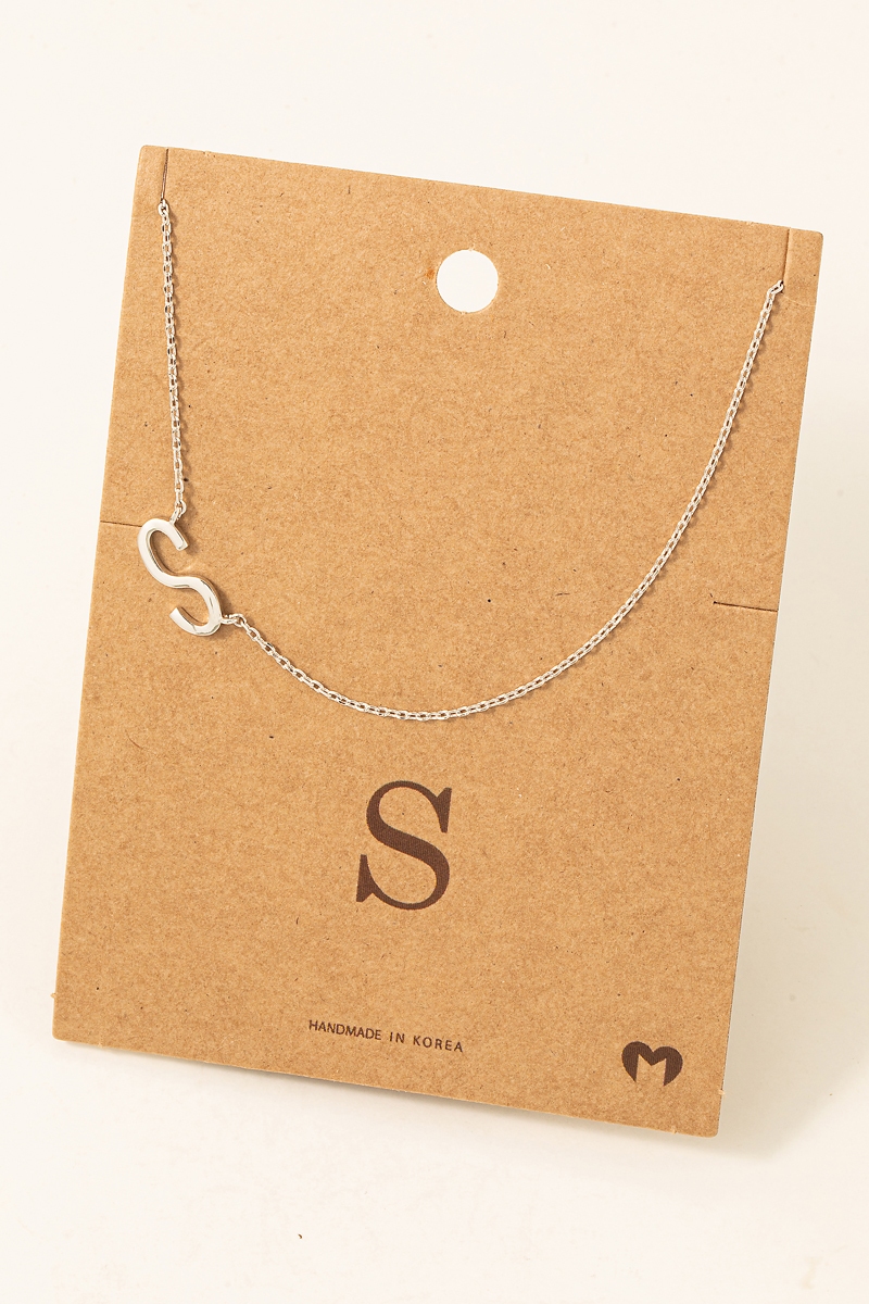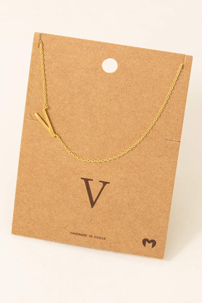 - This necklace displays a fashionable delicate initial letter pendant style. Celebrate the art of accessorizing with this piece that effortlessly encapsulates modern trends.