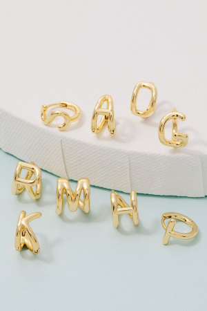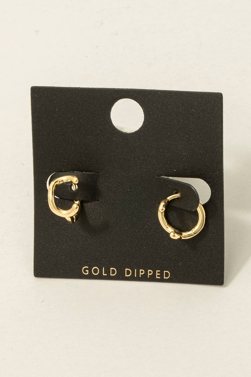 • this pair of columbus jewelry hoop earrings showcases a timeless gold dipped mini initial letter style. Immerse yourself in the details of design, as this pair of columbus jewelry hoop earrings effortlessly becomes a conversation starter.