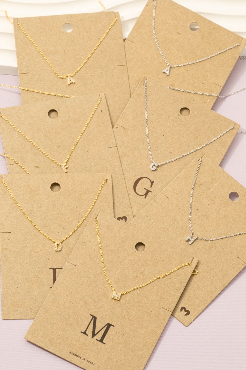- Let everyone know the first letter of your name in style. This trending necklace showcases a unique mini initial pendant necklace style. Explore a refined sense of style with this trending necklace, seamlessly elevating the chic factor of your look.