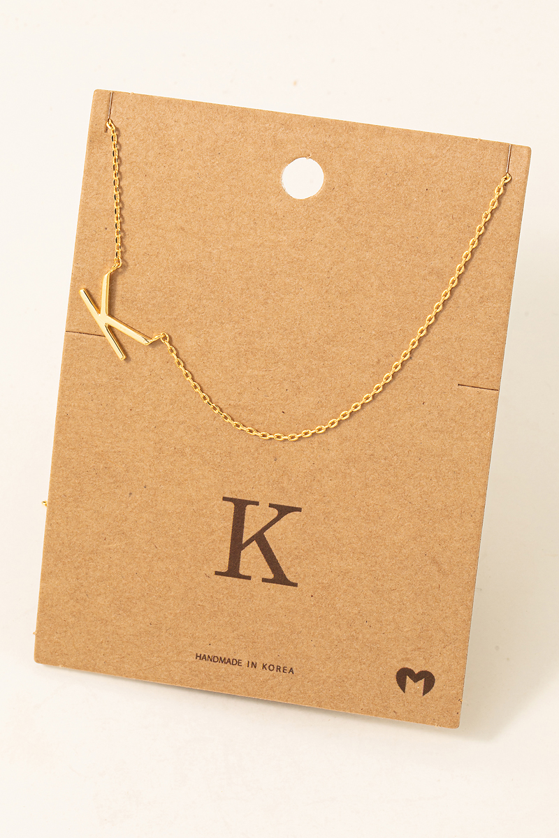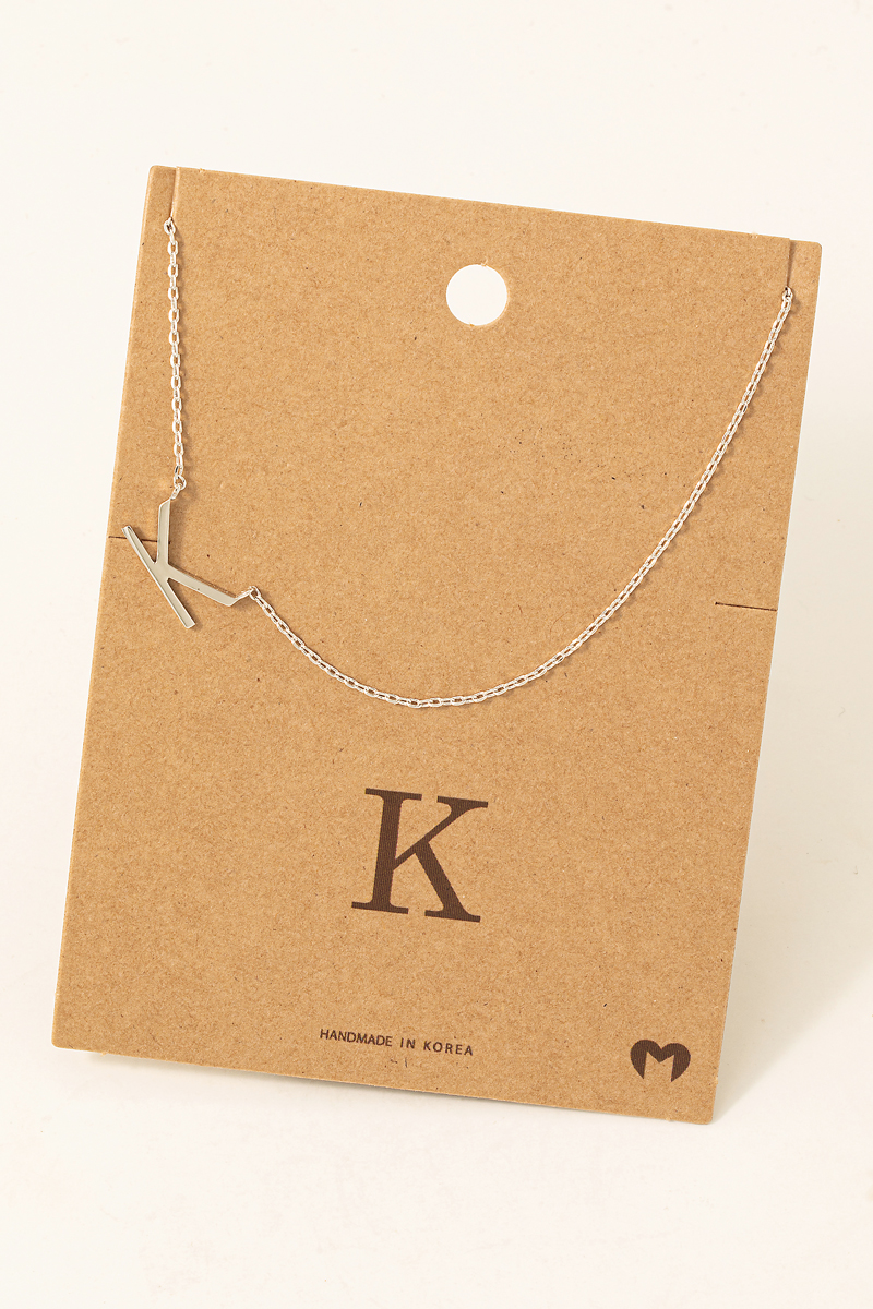 - This necklace displays a fashionable delicate initial letter k pendant style. Indulge in the allure of exquisite craftsmanship as this accessory effortlessly adds a touch of luxury to your attire.
