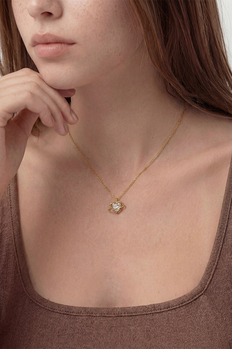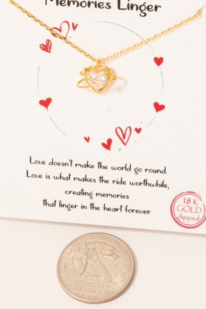 - This necklace introduces a unique gold dipped orbiting cubic zirconia heart pendant style. Celebrate individuality with this necklace that effortlessly expresses your unique sense of style.