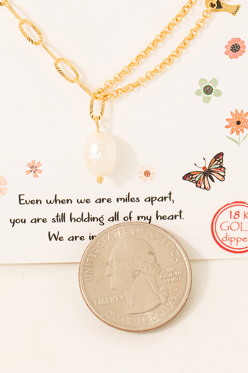 - This chain necklace brings a unique gold dipped pearl charm style. It also includes half and half chain. Step into a world of refined taste as this accessory effortlessly refines the details of your outfit.
