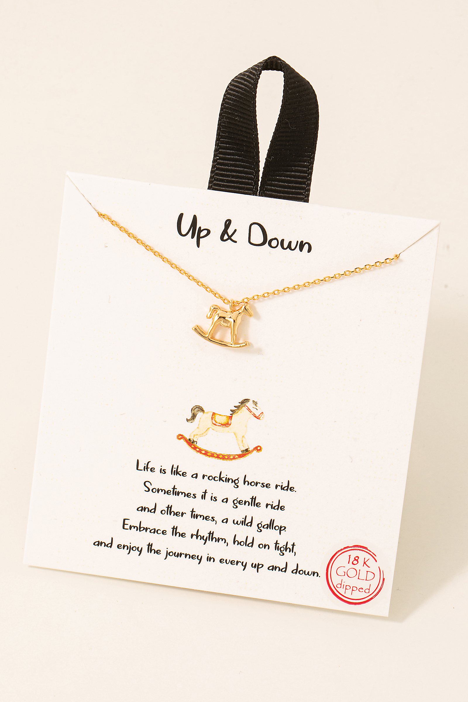 - This necklace brings a luxurious gold dipped rocking horse pendant style. Redefine your look effortlessly with this standout, on-trend piece.