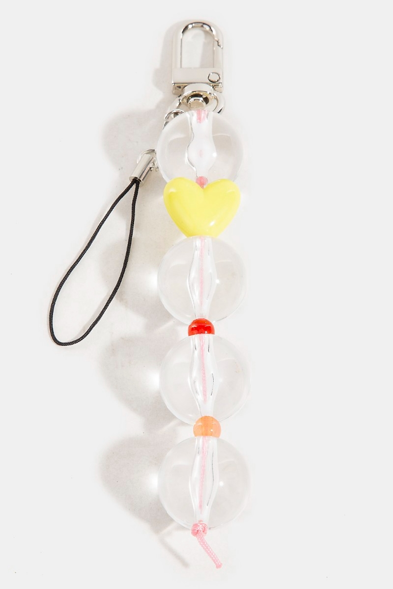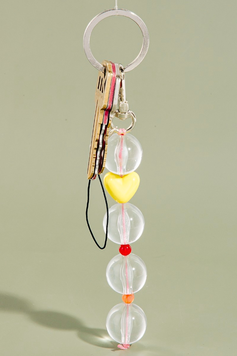 - This bag brings a stunning clear ball beads heart key ring keychain style. Delight in the intricate details that make this bag an essential element in expressing your fashion identity.
