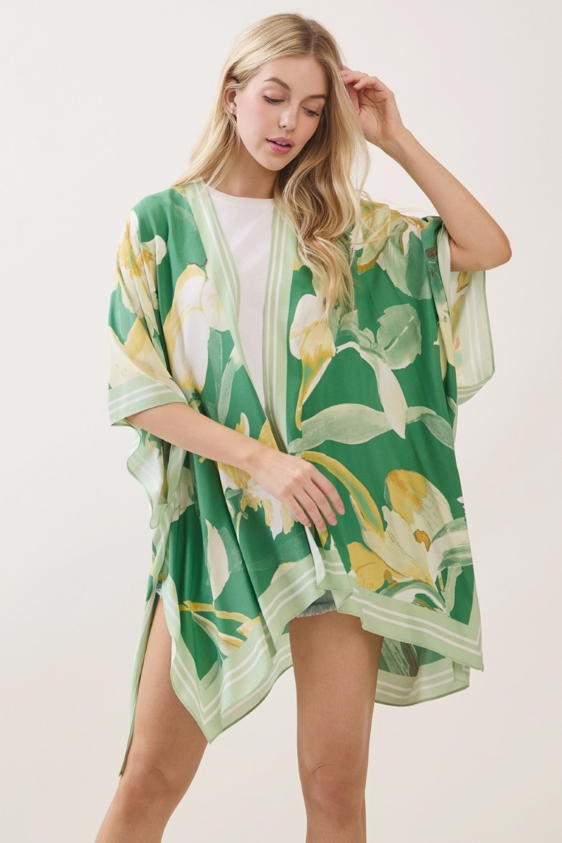 - This kimono introduces a stunning assorted flower print style. Witness the perfect fusion of style and functionality as this kimono effortlessly complements your lifestyle.