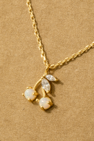 - This necklace displays a vibrant gold dipped opal and cubic zirconia cherry pendant style. Unveil a new dimension of sophistication as this necklace effortlessly enhances the elegance of your ensemble.