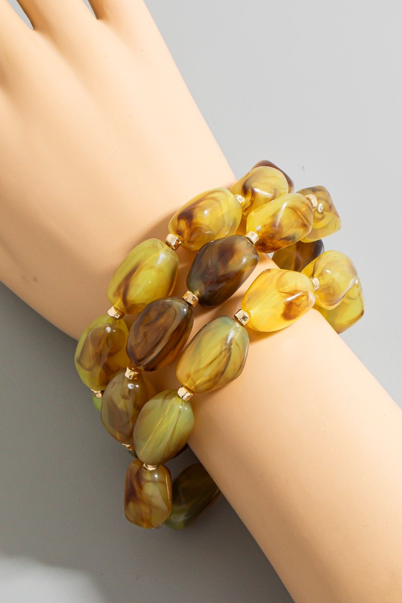 • This bracelet brings a luxurious chunky marble acrylic beads set style. Delight in the intricate details that make this bracelet an essential element in expressing your fashion identity.