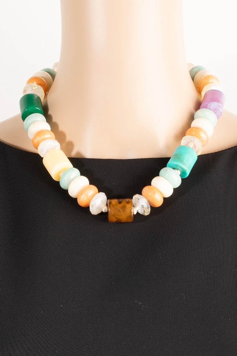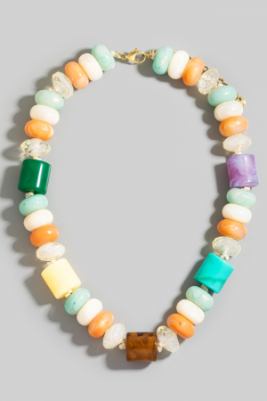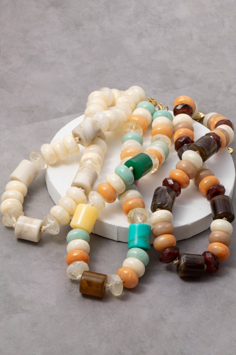 - This necklace showcases a unique large marble resin beaded style. Revel in the intricate design that effortlessly distinguishes this necklace, making it a statement piece.