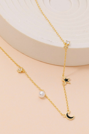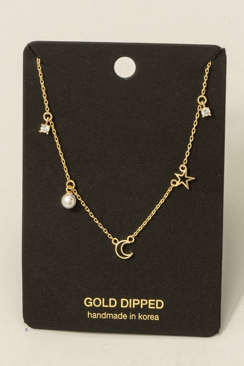 - This necklace introduces a stunning crescent moon stars charms style. Immerse yourself in fashion finesse with this statement necklace.
