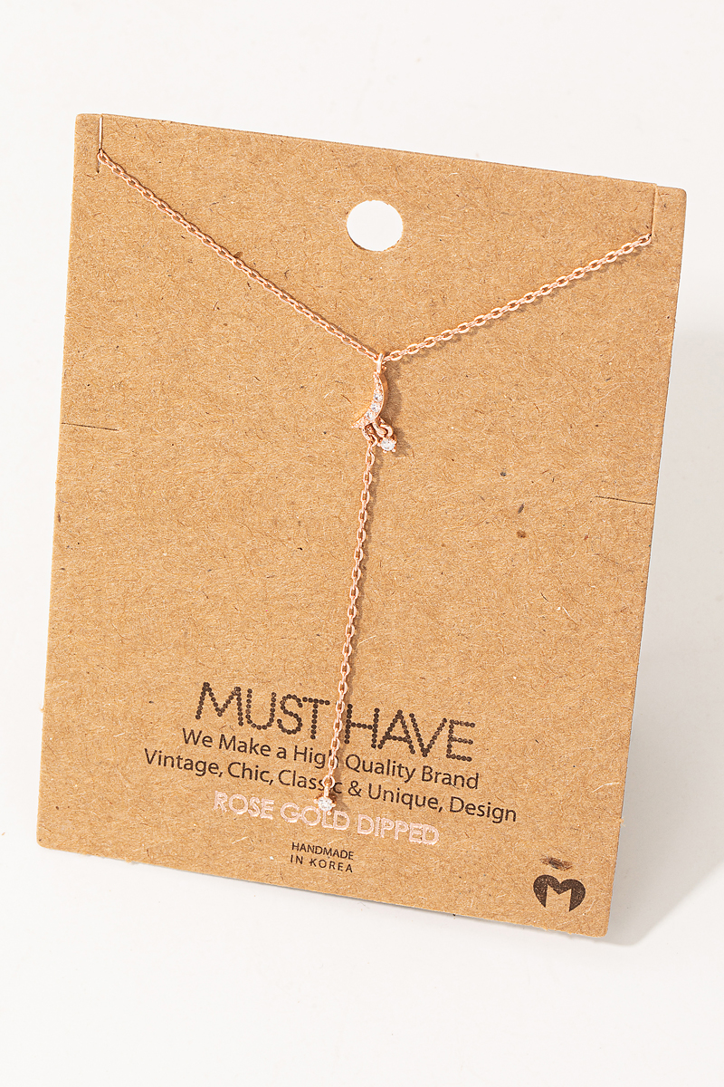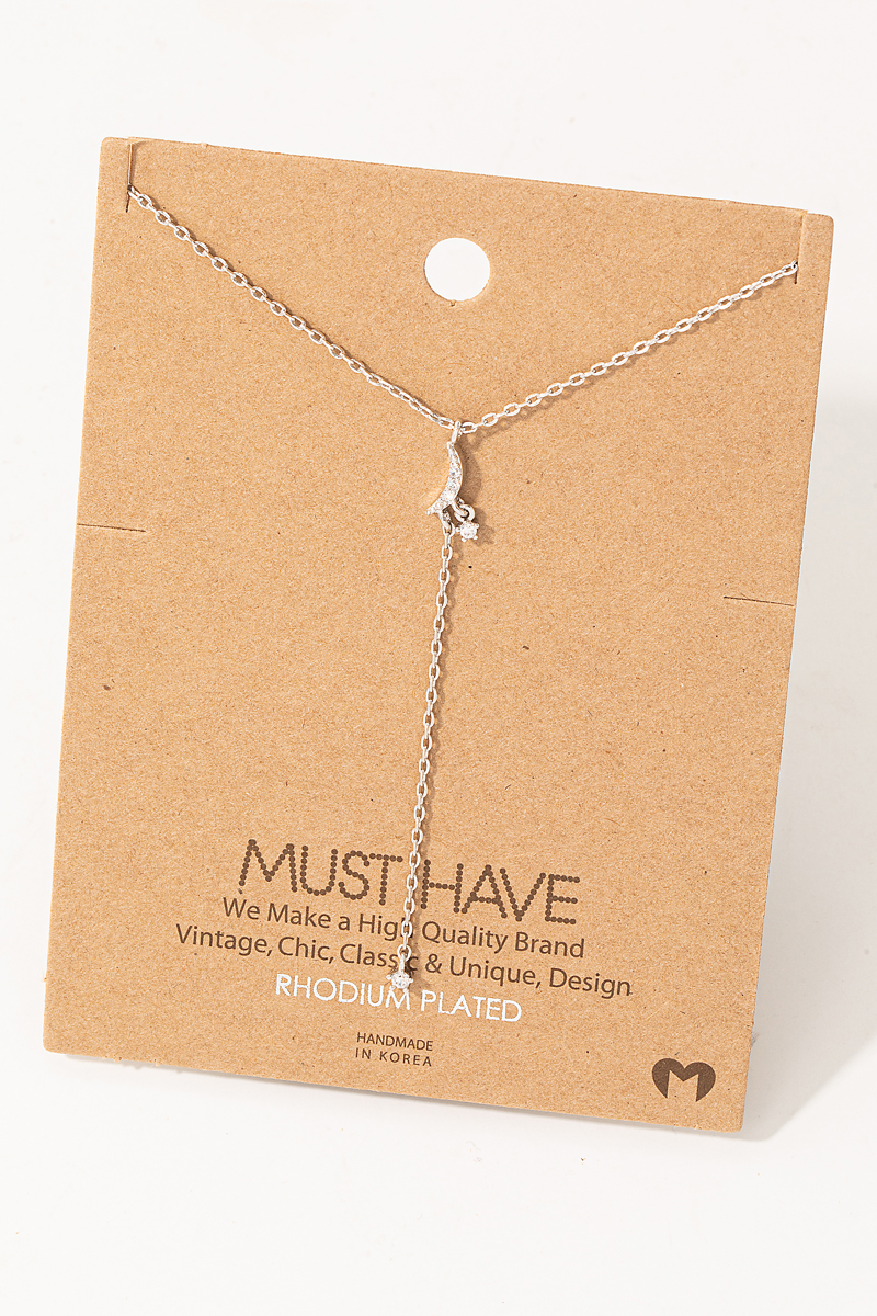 Moon And Star Cz Charm Y Necklace